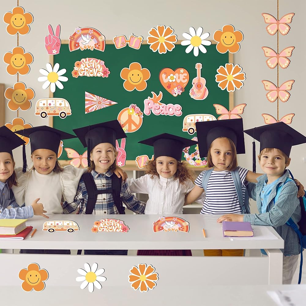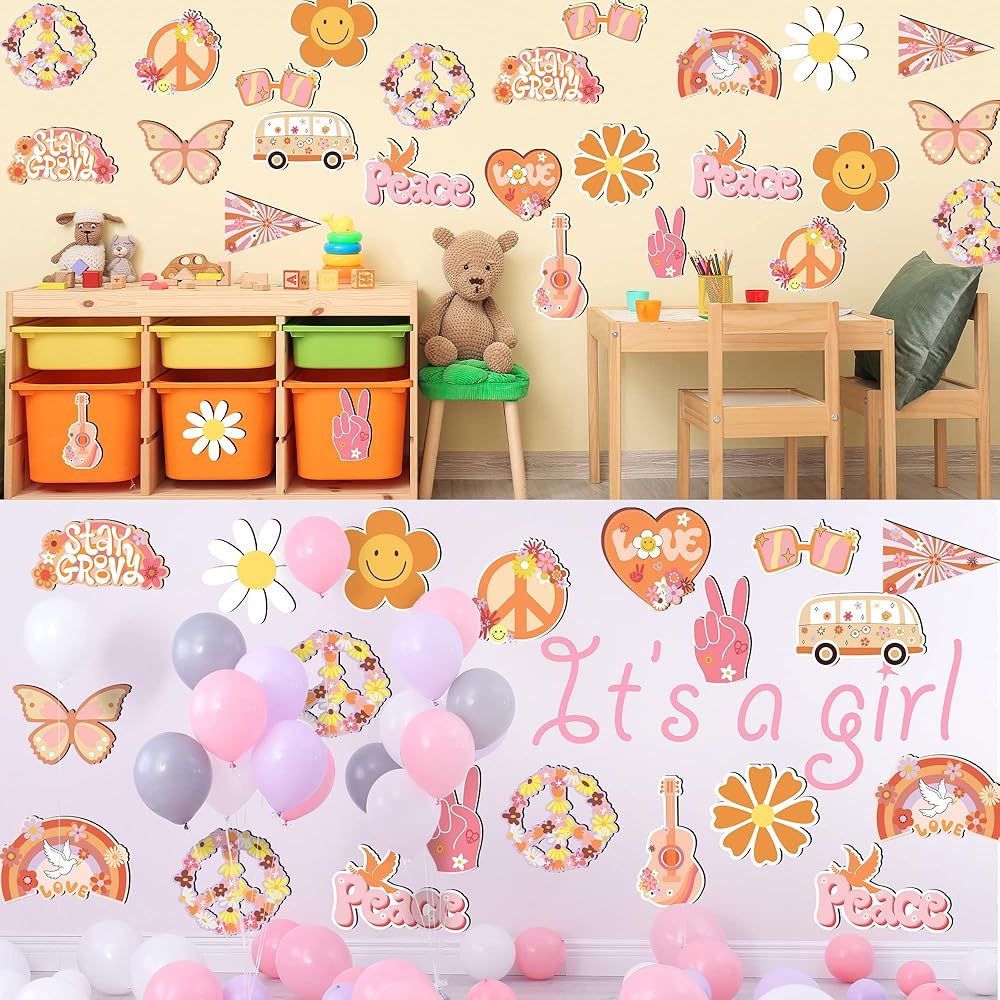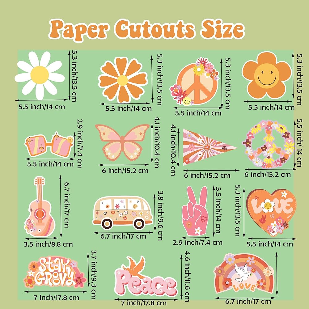 60 قطعة من ديكورات الفصل الدراسي الرائعة بوهو لوحة الإعلانات ديكور الحدود قطع الحفلات الرجعية 60 ثانية هيبي السلام زهرة قطع الورق مع الغراء لحفلات أعياد الميلاد الرائعة لوازم استحمام الطفل