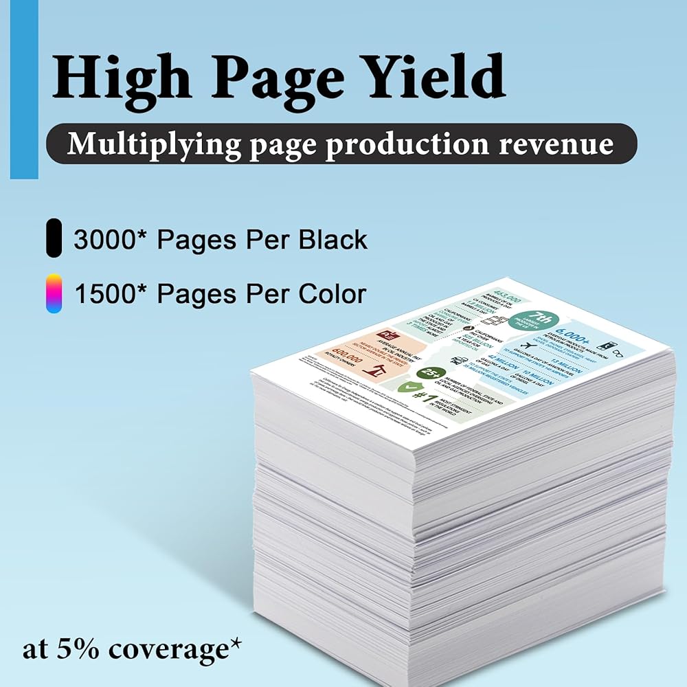- عدد الصفحات: ما يصل إلى 3000 صفحة لكل خرطوشة سوداء وما يصل إلى 1500 صفحة لكل خرطوشة ملونة.