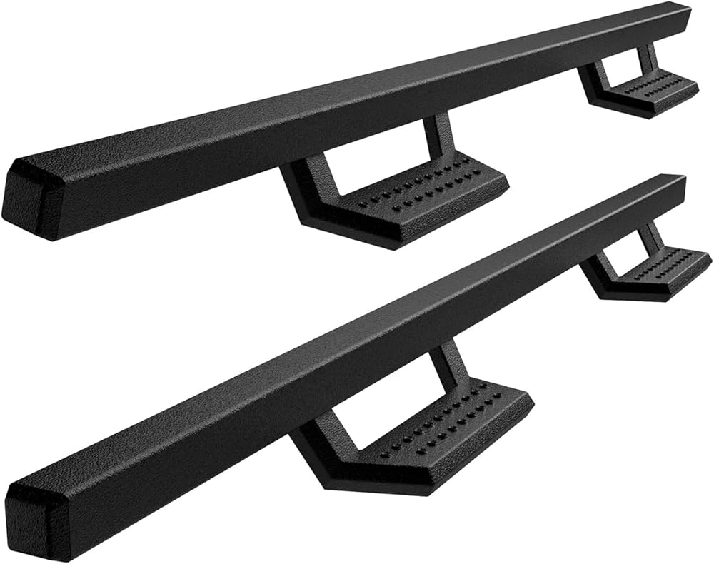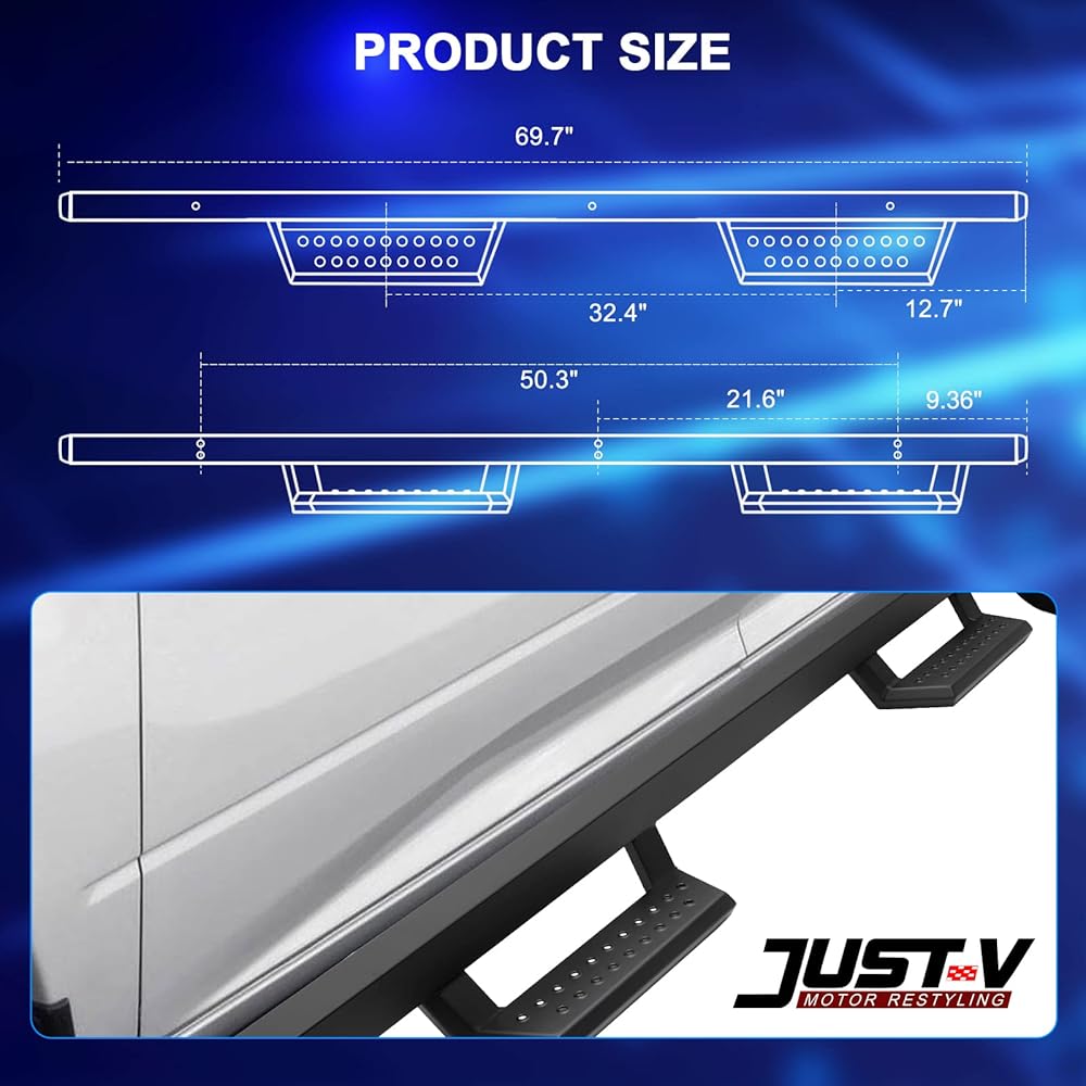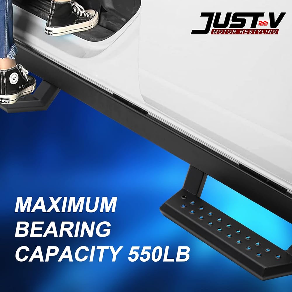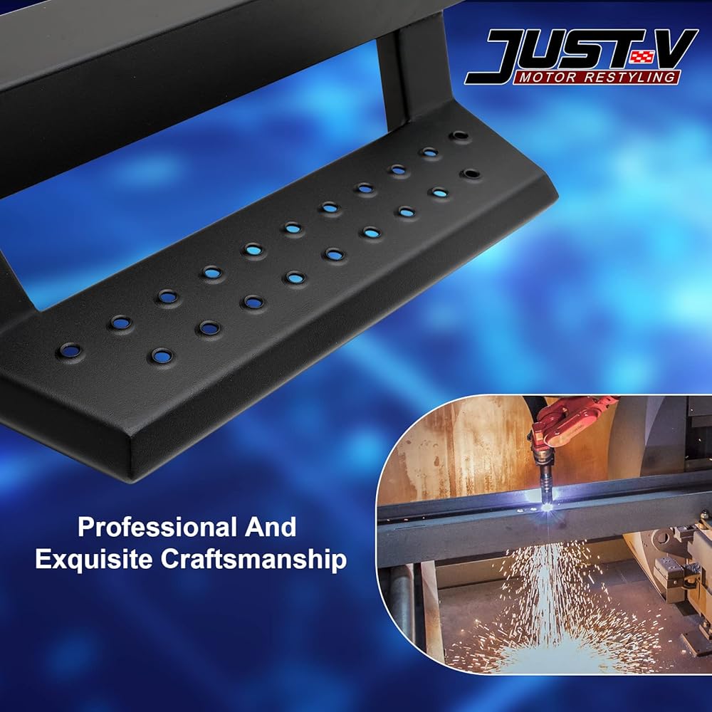 🚗 قدرة تحمل عالية - لوحة فولاذية ثقيلة بتصميم ممتاز ثلاثي الانحناءات، جنبًا إلى جنب مع تقنية رائعة، تمكن Nerf Bar من توفير سعة تحميل تصل إلى 550 رطلاً على كل جانب.