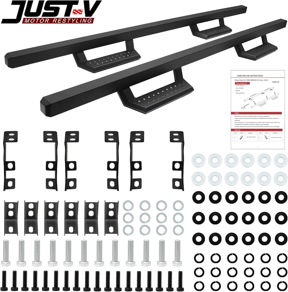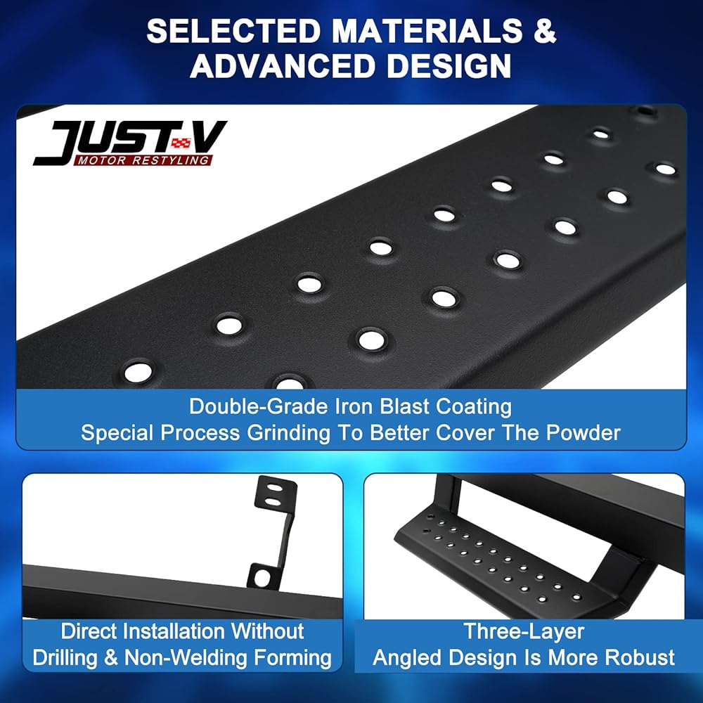 🚗 سهولة التركيب - تركيب مسامير مباشرة لألواح التشغيل JUST-V. لا يلزم الحفر. تتضمن الحزمة جميع أجهزة التثبيت والتعليمات. إذا كانت لديك أي أسئلة، فيُرجى الاتصال بنا وسنرد عليك في غضون 24 ساعة.