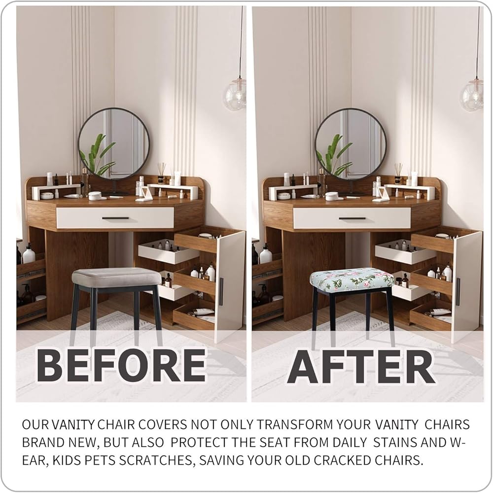 • ديكور جميل! يمكن لأغطية المقاعد المنجدة هذه إعادة تزيين كراسيك، وتغيير مظهر مجموعة طاولتك. امنح طاولة الزينة الخاصة بك مظهرًا جديدًا تمامًا.