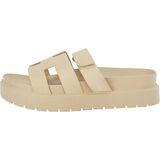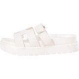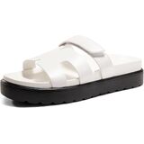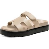 صنادل نسائية ذات نعل سميك مفتوحة من الأمام ونعل سميك ونعل سميك وشريط فيلكرو سهل الارتداء، أحذية صيفية، أبيض، مقاس 6.5