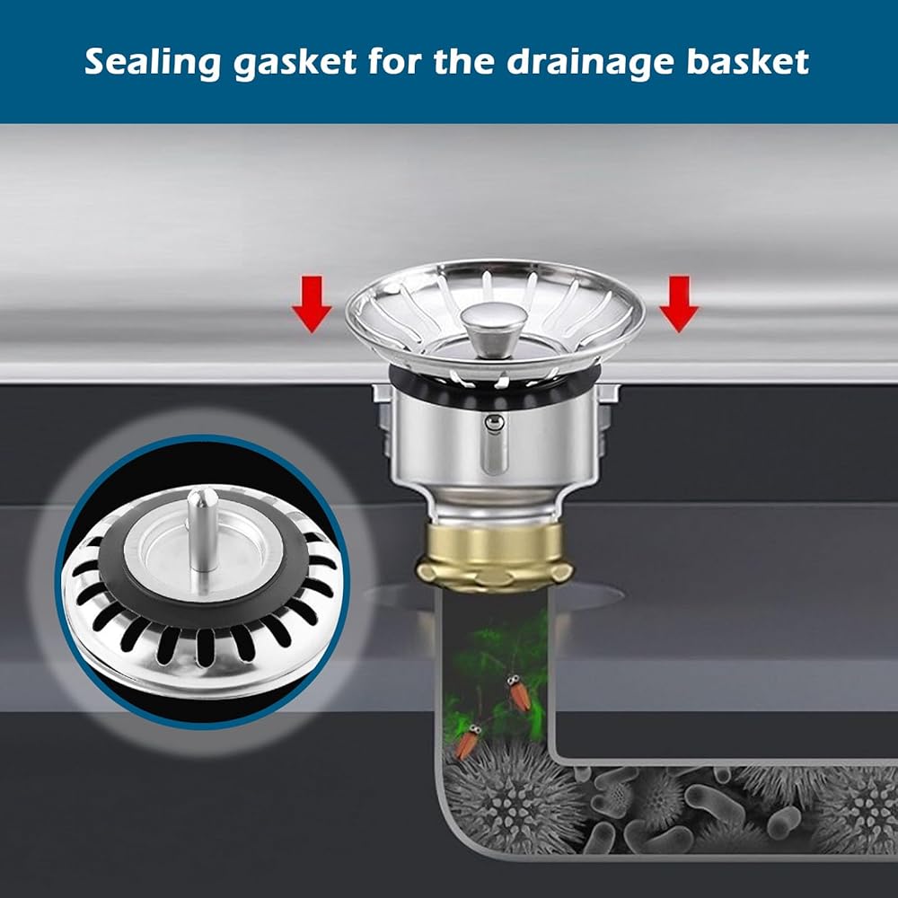 ملاحظة: عند استبدال أو تركيب حشية الختم، من الضروري الانتباه إلى حجم القطر الداخلي والقطر الخارجي والسمك ليتناسب مع صمام تصريف الحوض المستخدم، وذلك لتجنب مشكلة الختم السيئ.