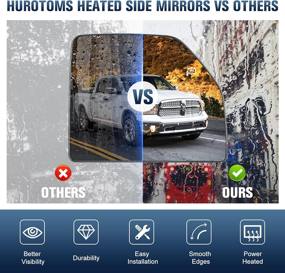 الميزات: مع وظيفة التسخين، فإن إبعاد الجليد والضباب عن مرايا الرؤية الجانبية يسمح للسائق برؤية المركبات والمخاطر الأخرى خلفه بسهولة أكبر عندما تكون الظروف الجوية قاسية. ملحوظة: زجاج مرآة الرؤية الجانبية هذا بدون مرآة محدبة ذات تعتيم تلقائي، لا يوجد كشف للبقع العمياء. إنه مناسب فقط للمرآة من نوع السحب