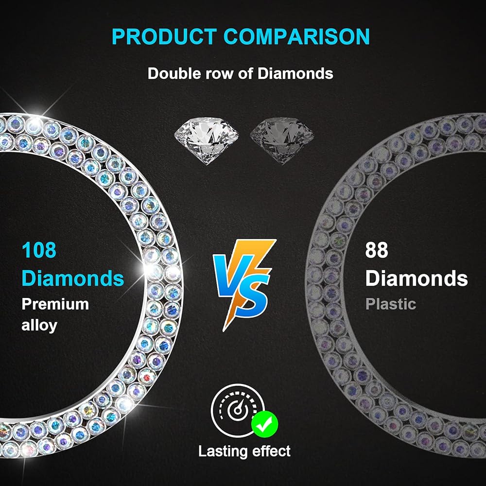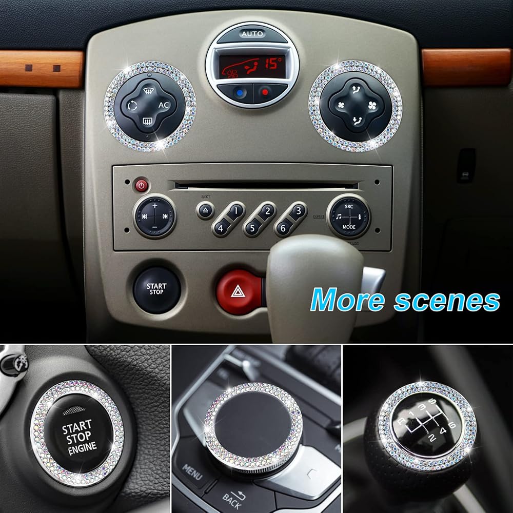 حلقات لامعة فاخرة وفريدة من نوعها ستجعل سيارتك مميزة بين الجميع بأناقة وبريق. يُستخدم على جميع المفاتيح ذات الحجم القياسي أو إشعال زر الضغط. رائعة أيضًا لتلميع الأزرار والمقابض المستديرة وعجلات القيادة وتحولات العصا والمزيد. 【قد لا يكون ملصق السيارة الموجود على السيارة مناسبًا لبعض موديلات السيارات. قبل الشراء، يرجى التحقق من قطر زر الإشعال في السيارة للتأكد من أن خاتم حجر الراين الكريستالي للسيارة الخاص بنا يمكن أن يناسب سيارتك تمامًا.