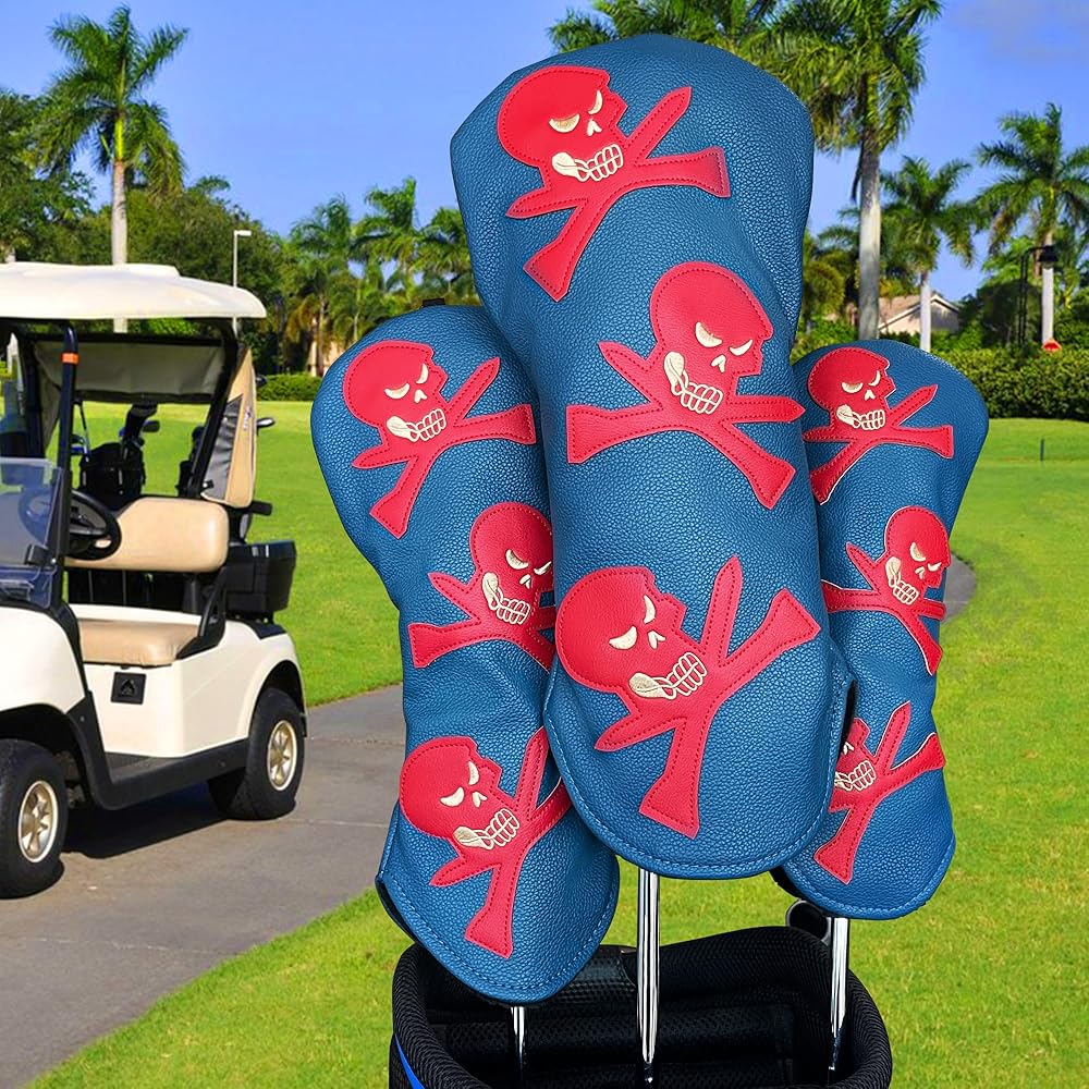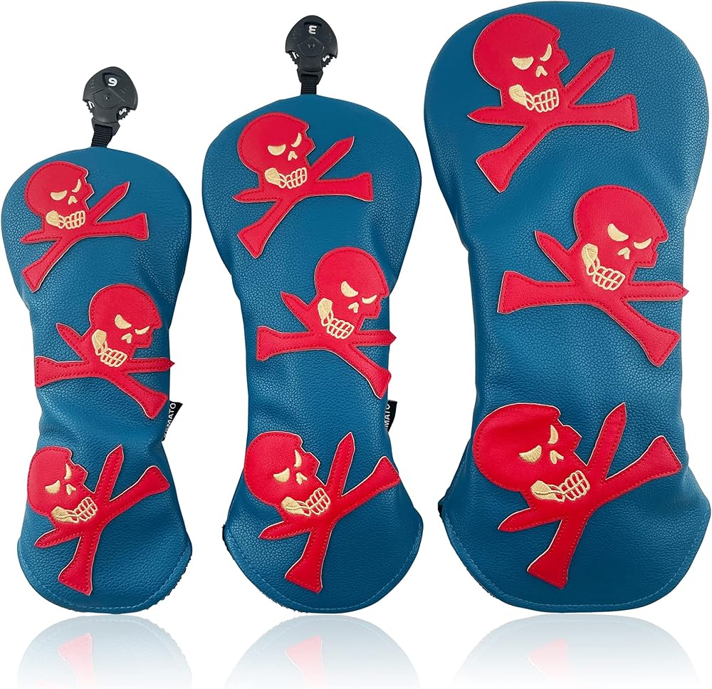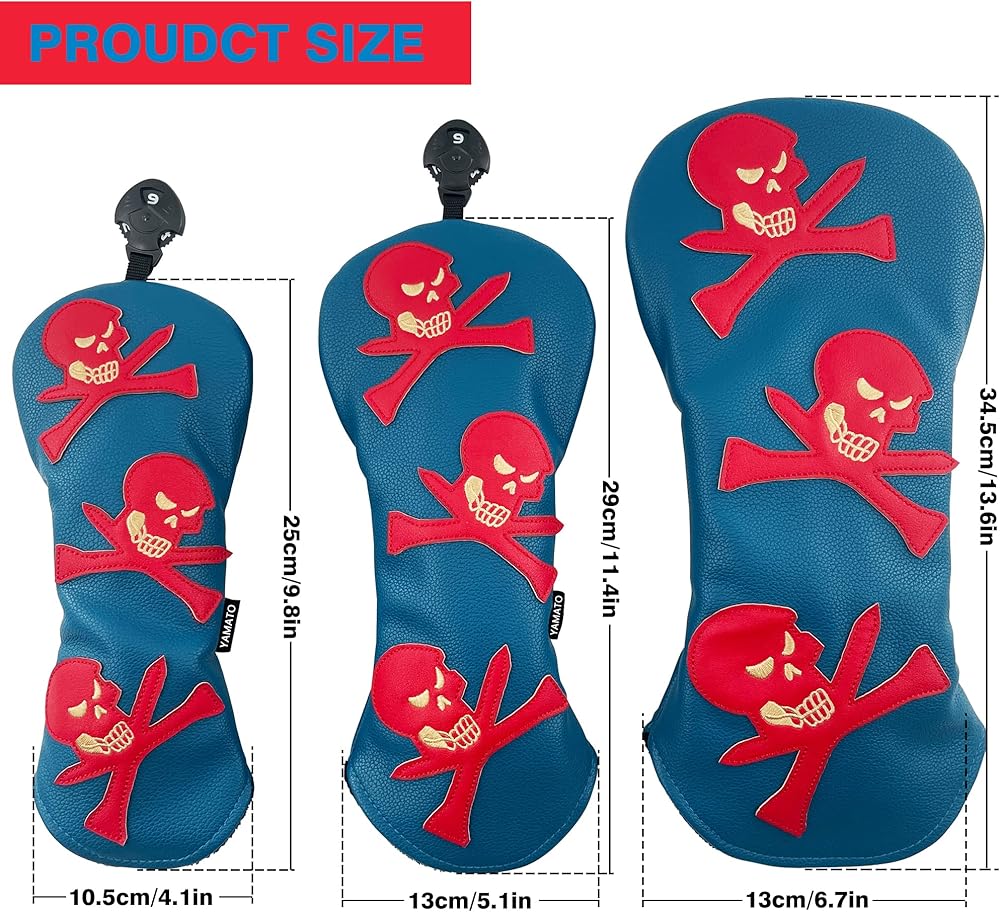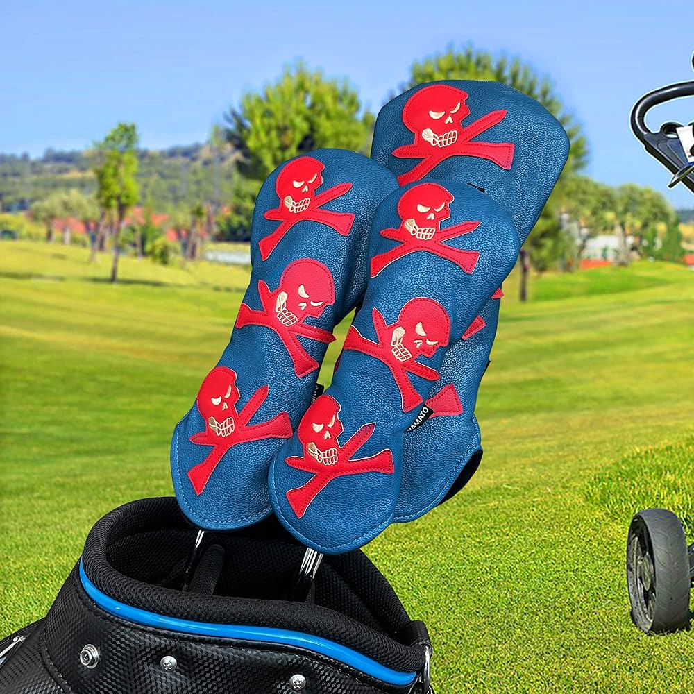 مجموعة أغطية رأس الجولف من ياماتو، أغطية رأس جمجمة وشعار T'S لنادي الجولف للسائق، أغطية رأس جولف هجينة من الخشب السالك، تناسب جميع نوادي الجولف ذات العلامات التجارية - 3 عبوات