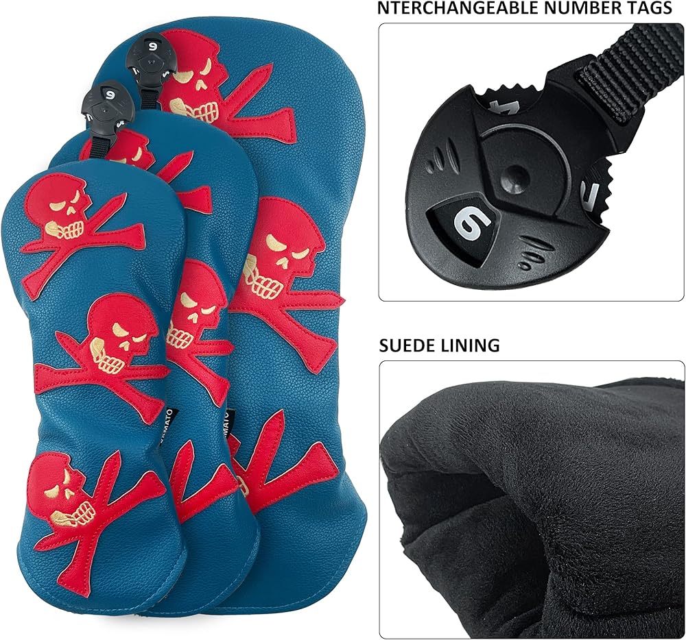 • يتميز بجمجمة مطرزة وشعار T: يتحدى غطاء رأس الجولف الخاص بنا القاعدة مع حماية الأندية الخاصة بك من خلال جزء داخلي من القطيفة الناعمة، وجمجمة مطرزة وشعار T على الجهة الأمامية