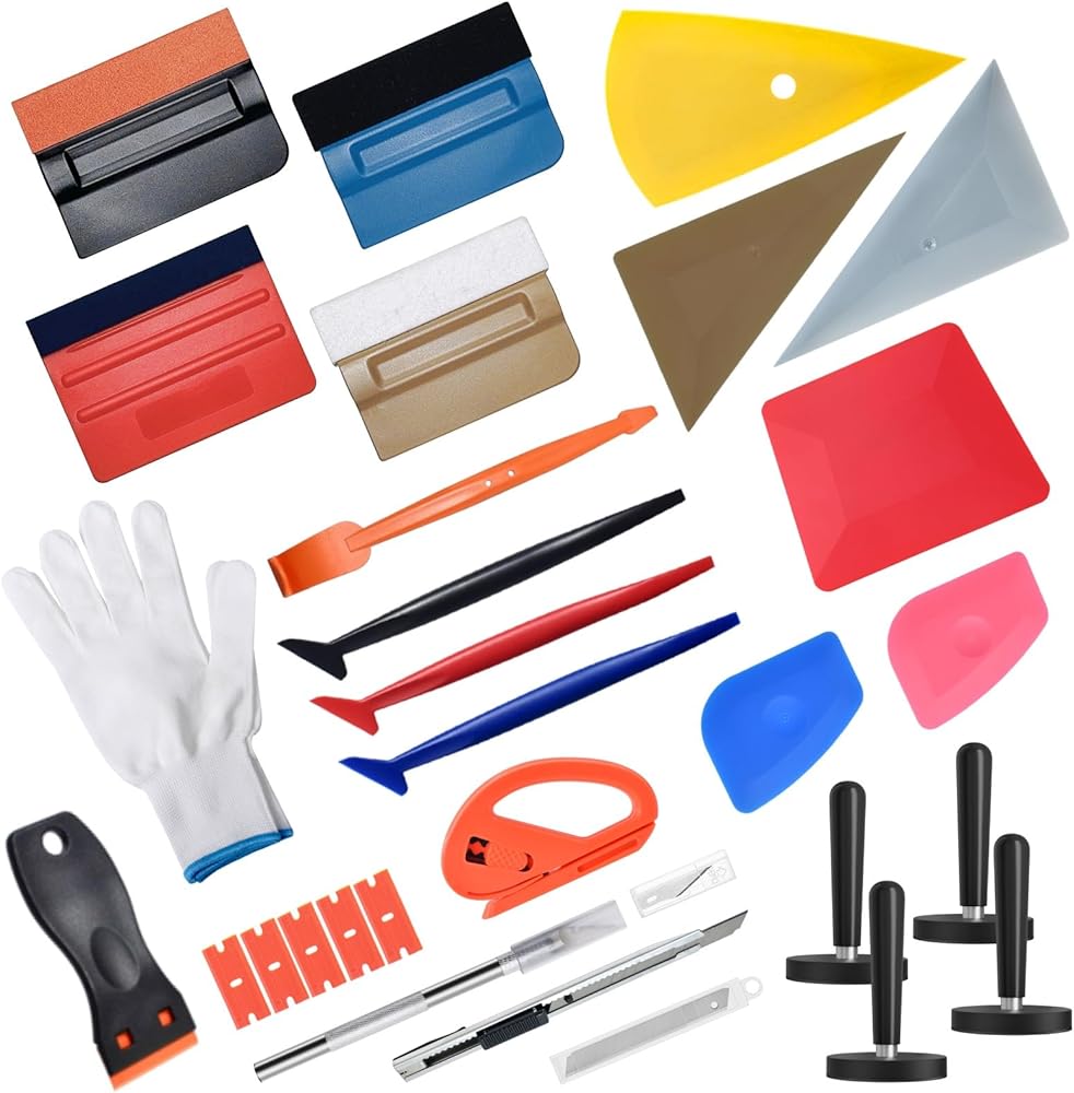 【32 قطعة من أدوات تطبيق تظليل النوافذ】تتضمن 32 قطعة من أدوات تظليل النوافذ: ممسحة الصبغة، ممسحة سيليكون، ممسحة جانبية، ممسحة يدوية، ممسحة PPF، ممسحة لباد القماش، ممسحة من الجلد السويدي، قطعتان ممسحة صغيرة للبطاقات، 3 قطع ممسحة زاوية مثلثة، 6 قطع لفافة دقيقة ممسحة لاصقة، ممسحة بطاقات رمادية، 4 قطع حاملات مغناطيسية، أدوات قلم دبوس، مكشطة حلاقة بلاستيكية ومعدنية، قاطع فينيل آمن، ممسحة تاكر المشمسة، شفرة التمساح، قفازات، سكين فائدة 60 درجة و30 درجة و10 شفرات.