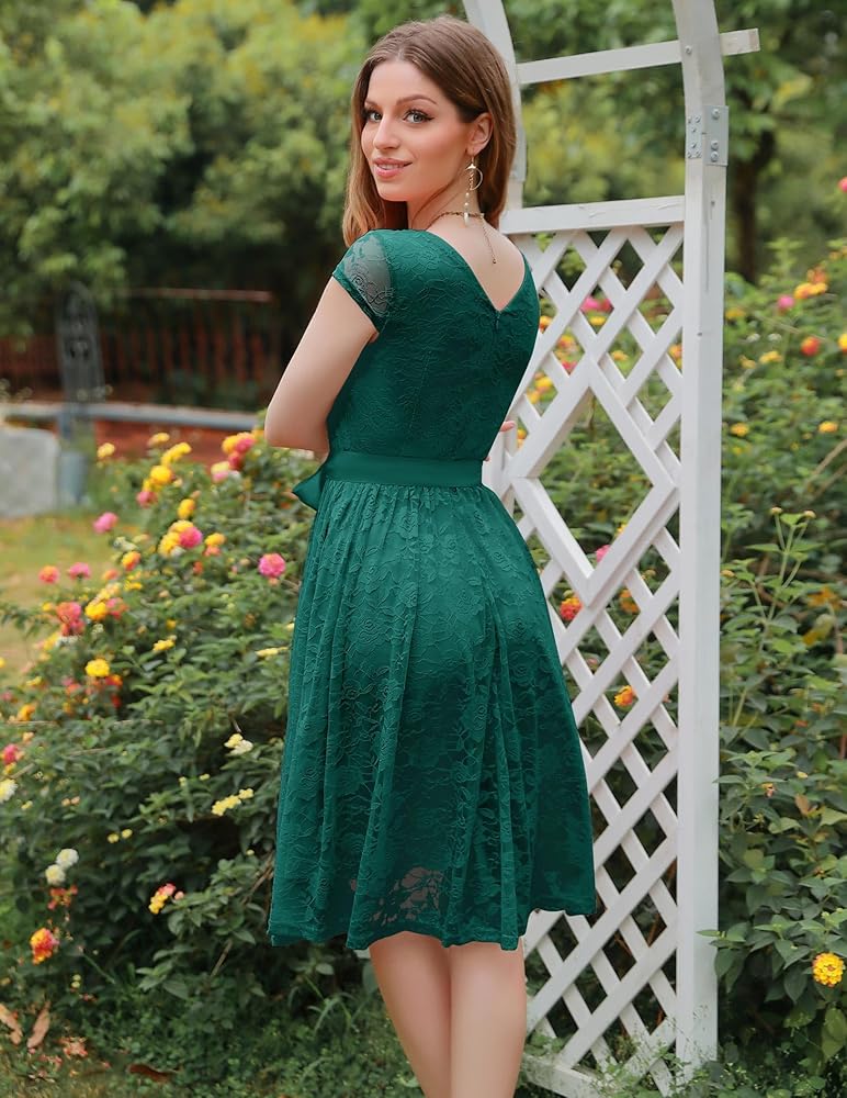 الأنماط: كم قصير، سحاب خلفي مخفي، تنورة متأرجحة على شكل حرف A. يُظهر الدانتيل الناعم عالي الجودة الفستان درجة حرارتك الأنثوية والأنيقة