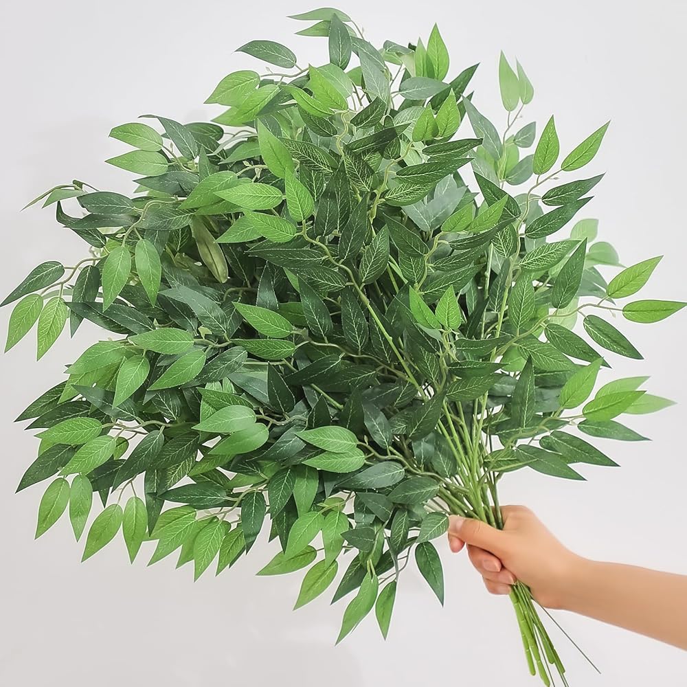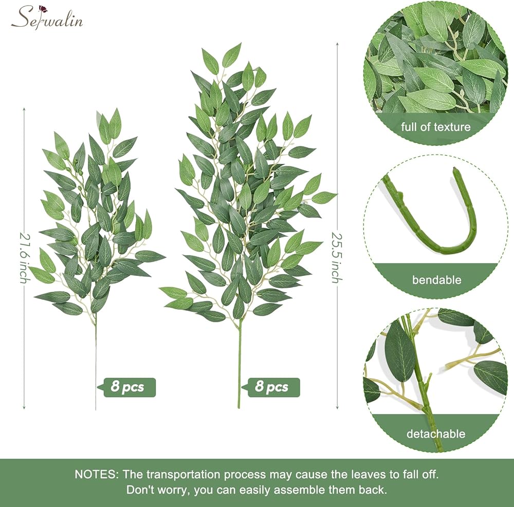 سيقان خضراء صناعية: سوف تحصل على 16 قطعة من سيقان روسكوس الخضراء الإيطالية الصناعية بمقاسين مختلفين، 8 قطع 22 بوصة و8 قطع 26 بوصة. يبدو أن الجمع بين حجمين مختلفين، وطبقات الأوراق الخضراء، والفروع المتشابكة، هو صورة غنية ومتعددة الطبقات. إنها تجلب لك شعرًا وجمالًا لا نهاية له، كما تجعل الديكور بأكمله أكثر طبقات.