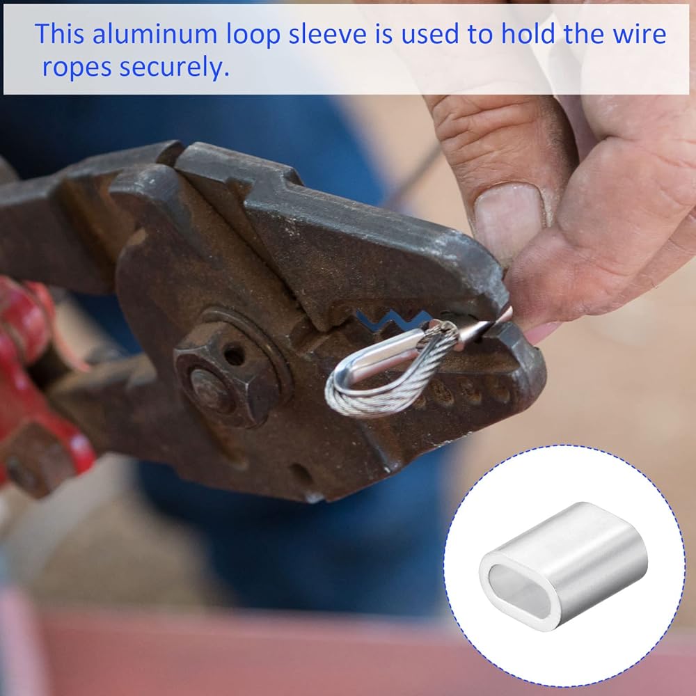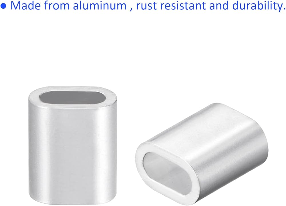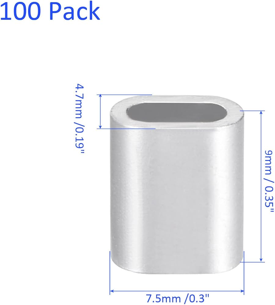 100 عبوة من الأكمام الدائرية المصنوعة من الألومنيوم بيضاوية - قفل حبل سلكي 1/8 بوصة 3.3 مم، يمكن وضعها في الهواء الطلق