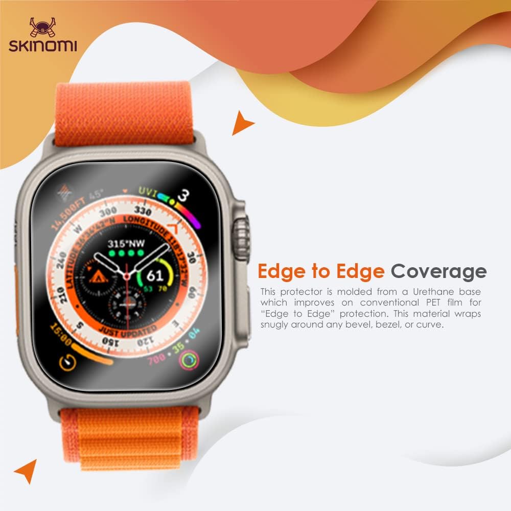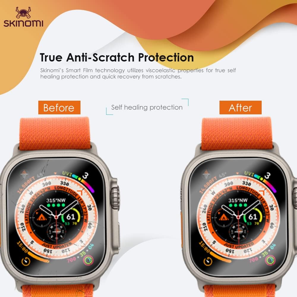 واقي شاشة Skinomi متوافق مع Apple Watch Ultra/Apple Watch Ultra 2 (إصدار مطور) (49 ملم) (6 عبوات) طبقة شفافة عالية الدقة من مادة TPU المضادة للفقاعات