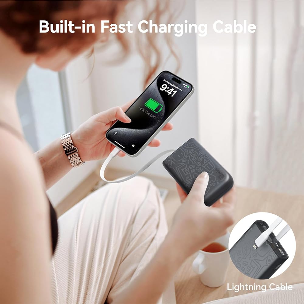 كابل لايتنينج مدمج: قل وداعًا للأسلاك المتشابكة! يتميز بنك الطاقة الخاص بنا بكابل Lightning مخفي للشحن المريح أينما ذهبت.