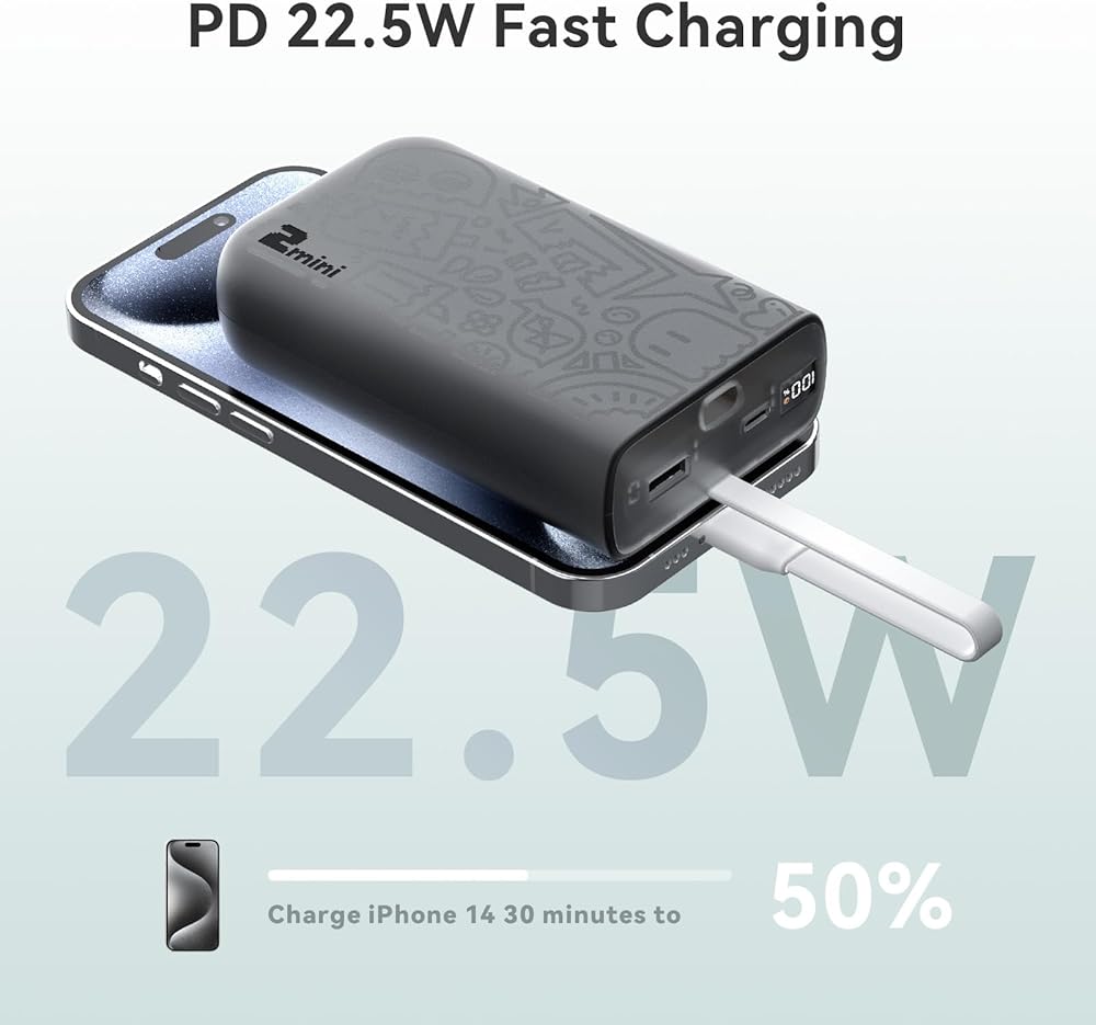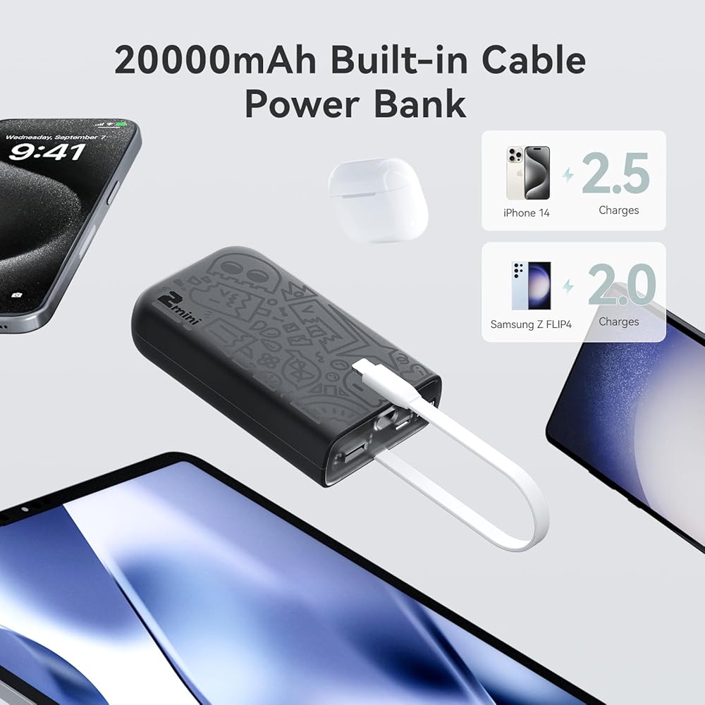 شاحن محمول على طراز imuto Graffiti مع كابل إضاءة مدمج، شاشة LED لبنك الطاقة 22.5 وات شحن سريع 20000 مللي أمبير في الساعة، أساسيات السفر، حزمة بطارية متوافقة مع iPhone وSamsung وiPad وجميع الهواتف المحمولة