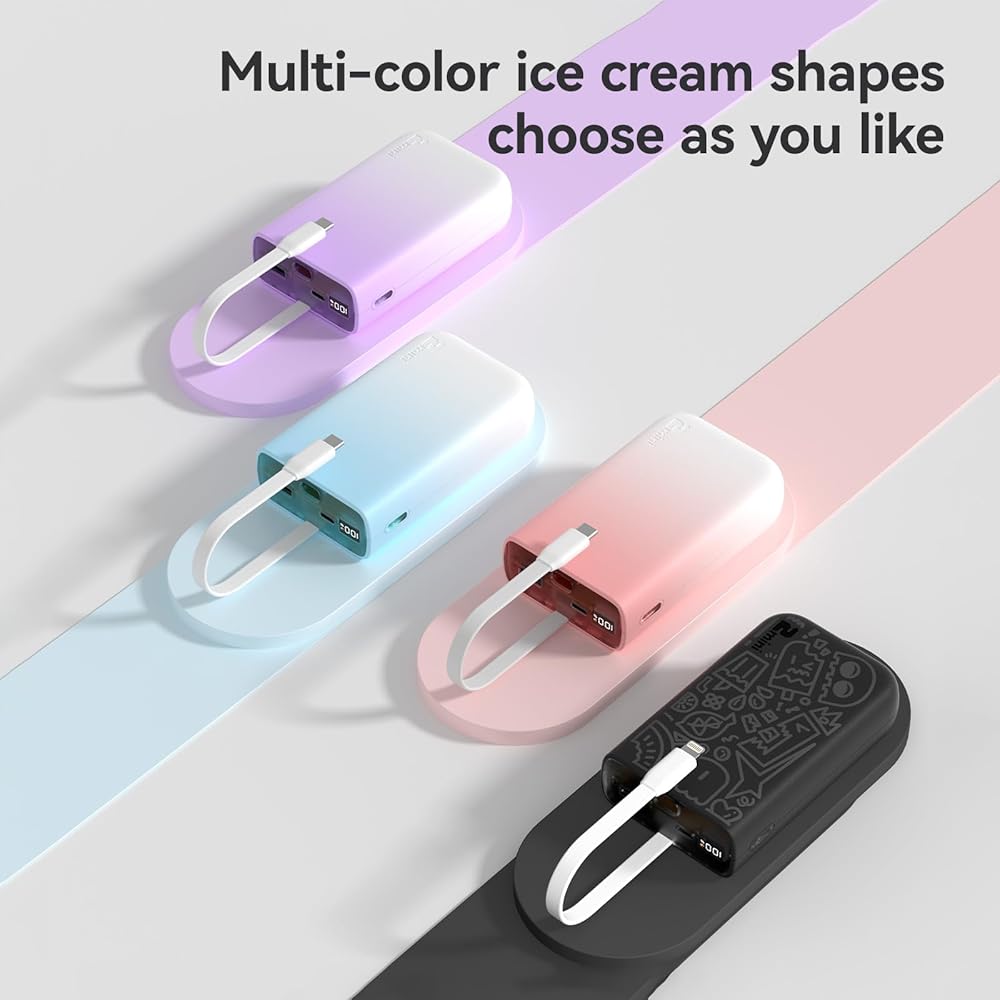 رائع كالثلج: المظهر الخارجي المرح مستوحى من موسيقى البوب الجليدية، مما يضيف لمسة من المرح إلى روتين الشحن الخاص بك؛ احمل قوتك بثقة بفضل التصميم الفريد المحمول باليد، المثالي لأولئك الذين يتنقلون.