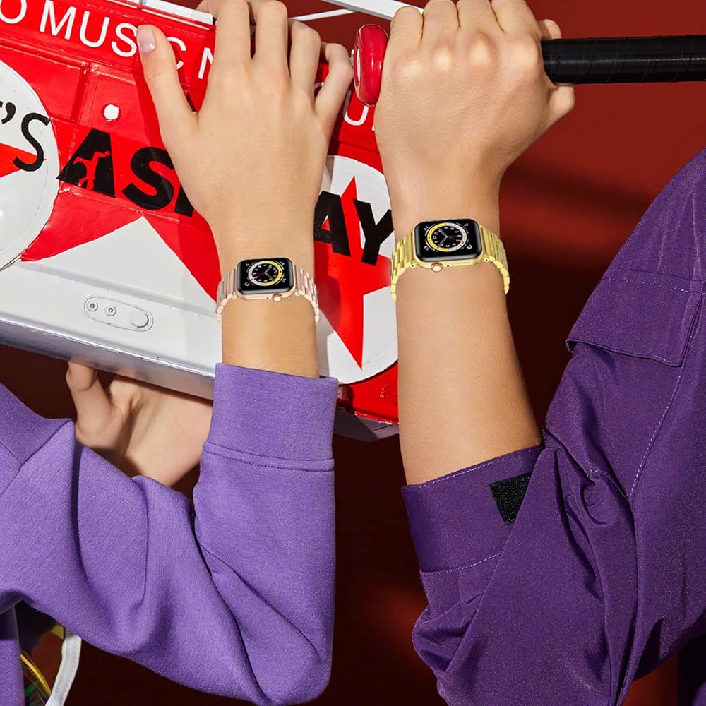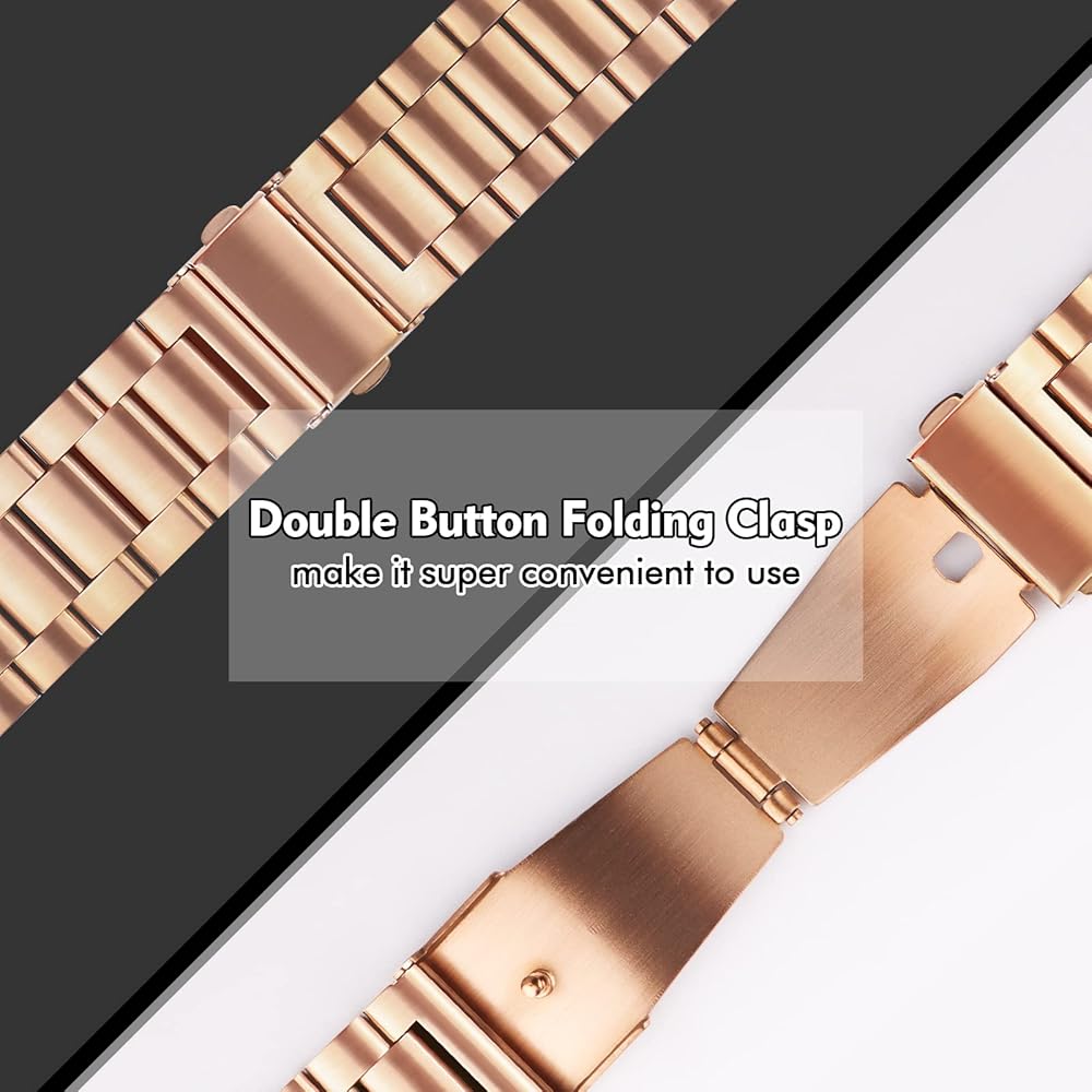 مادة فاخرة: أحزمة الساعة من السلسلة 9 مصنوعة من مادة الفولاذ المقاوم للصدأ عالية الجودة، صلبة ومتينة، ومقاومة للماء والتآكل، ولا تبهت. تصميم بإبزيم بزر مزدوج قابل للطي لقفل ساعتك بأمان.