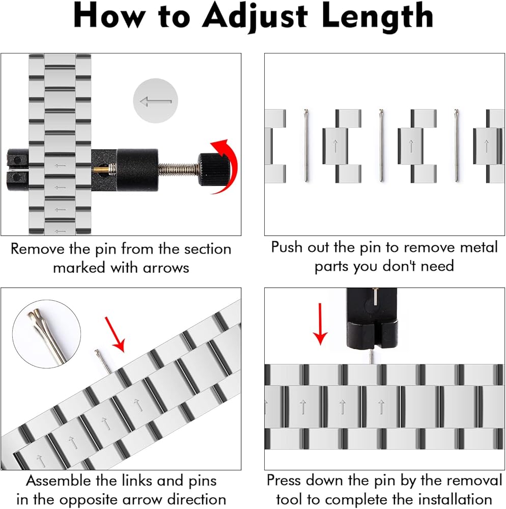 تشمل العبوة: 1 × سوار معدني من الفولاذ المقاوم للصدأ لساعة Apple، 1 × أداة إزالة الارتباط ودبوس، 1 × دليل التعليمات. إذا كانت لديك أي أسئلة حول سوار الساعة، فيرجى الاتصال بنا مجانًا.