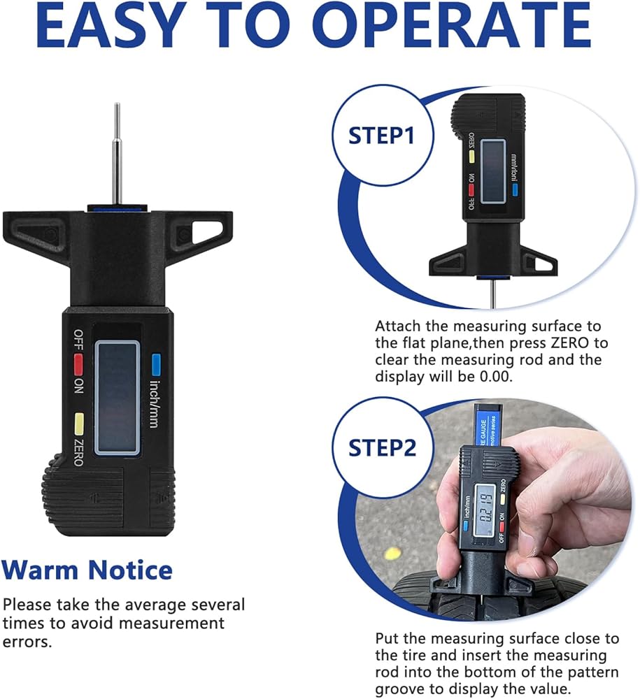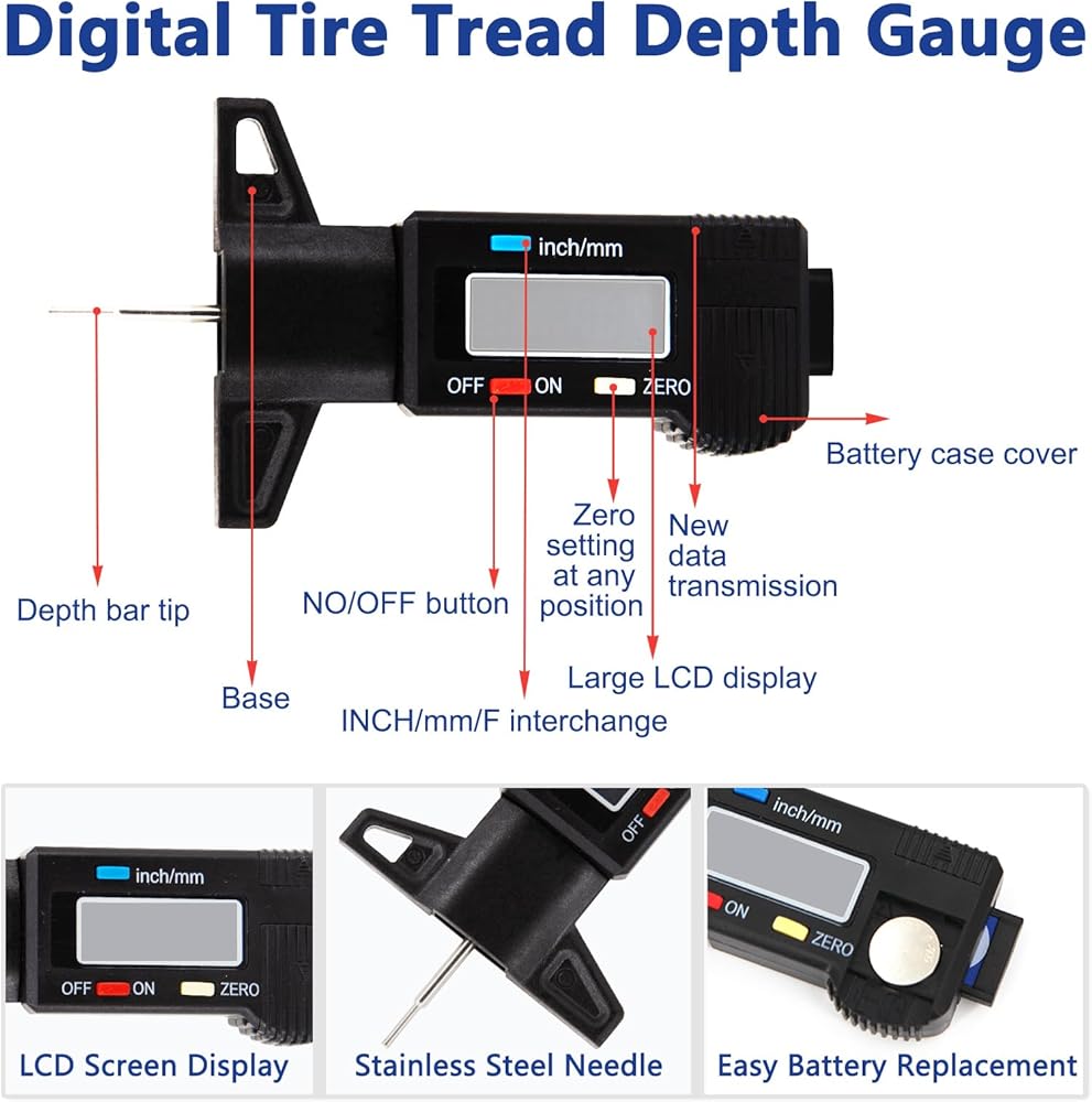 أداة عملية للمركبة - يمكن لمقياس عمق الإطار الرقمي هذا التحقق بسرعة من مداس الإطار المتبقي لتحديد المدة قبل الحاجة إلى الاستبدال دون إزالة الإطارات.