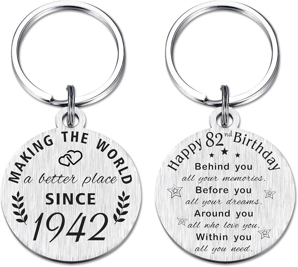 هدايا عيد الميلاد الـ 82، سلسلة مفاتيح عيد ميلاد جميلة لشخص ولد في عام 1942، هدايا عيد ميلاد تبلغ 82 عامًا للنساء والرجال، سلسلة مفاتيح عيد ميلاد ذات معنى للاحتفال بعمر 82 عامًا رائعة!
