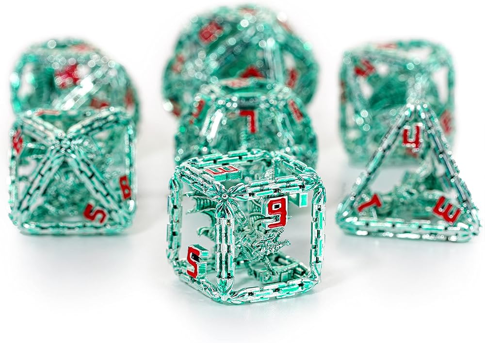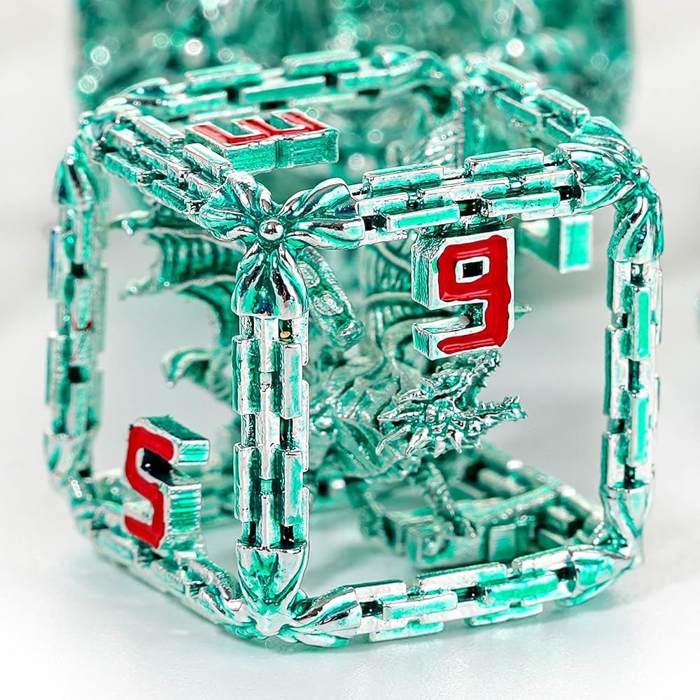 ارفع مستوى لعب الأدوار الخاص بك إلى مستوى أعلى باستخدام نرد التنين المستوحى من الإله التنيني تيامات، الذي يحكم الطبقة الأولى من Nine Hells. التنانين النابضة بالحياة الموجودة داخل النرد مصقولة يدويًا لتتألق في الضوء، وستثير الخوف والحسد في الأصدقاء والأعداء على حد سواء. المجاملات أمر لا مفر منه.