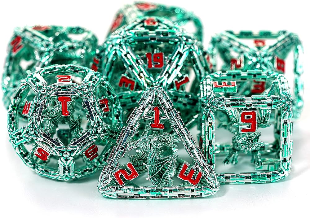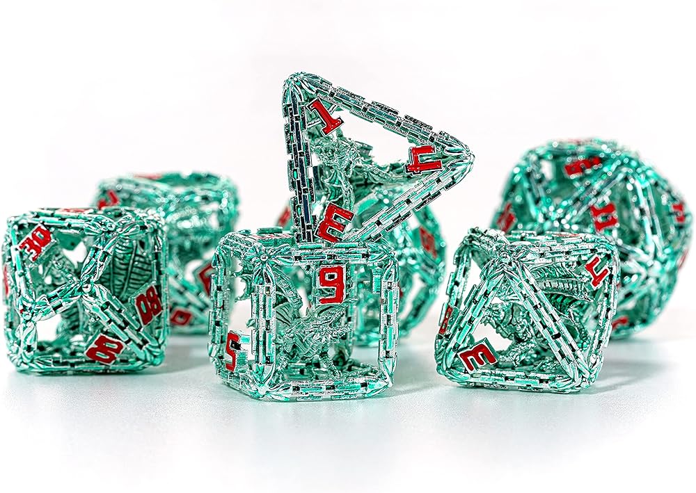كريسب، وليس مكتنزًا مثل النرد المعدني الآخر الذي يكافح من أجل الارتداد. الحجم الأكبر (D6: 18 مم)، متين وخفيف الوزن (إجمالي 68 جرامًا) يبدو معدن النرد DnD رائعًا في اليد ويتدحرج بشكل أكبر على الطاولة بصوت مرضي للغاية عندما يتشققان معًا.