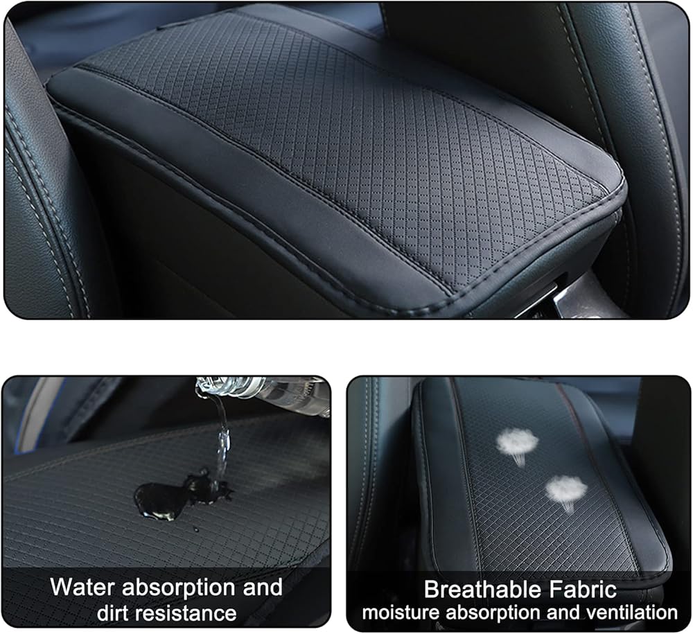 مواد عالية الجودة: وسادة صندوق مسند الذراع بوحدة التحكم المركزية مصنوعة من جلد ذو خطين من الألياف الفاخرة المنقوشة بملمس الجلد. إنه مقاوم للاهتراء، ومسامي، وناعم، ومقاوم للماء، والسطح سهل التنظيف.