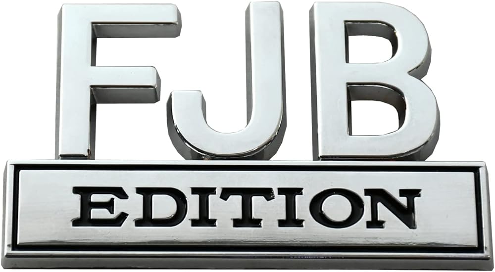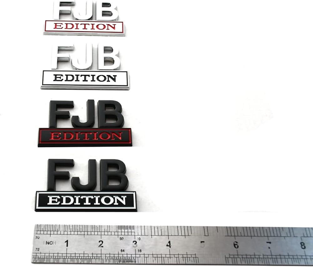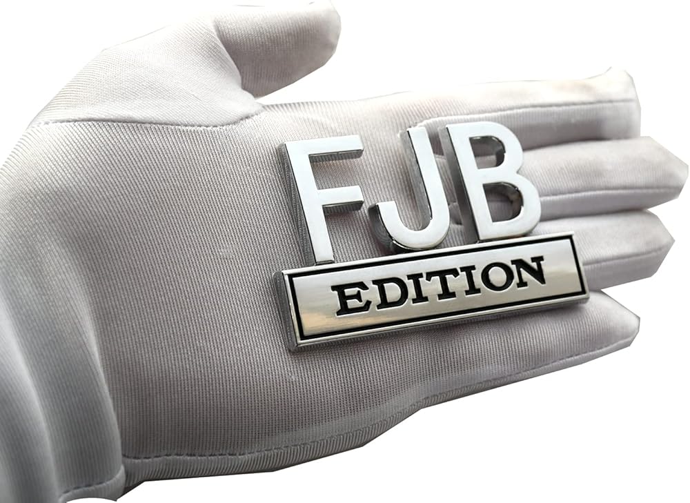 قطعتان من شعار FJB Edition - Badgeslide The Original FJB Edition Emblem Fender Badge، ملصق لشارة سيارة شاحنة ثلاثية الأبعاد (كروم/أسود)، CH-FJB-ChBk
