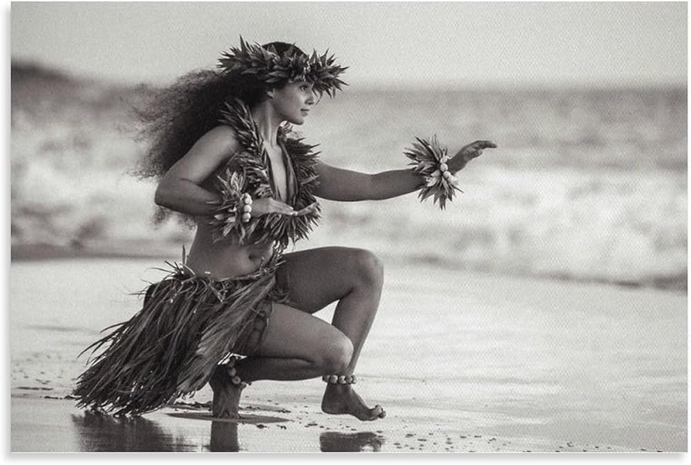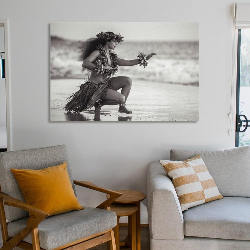 ملصقات ديكور الغرفة، ملصقات سريالية لامرأة هاواي حولا للرقص، ملصقات 80 ثانية (2) لوحات فنية جدارية من القماش، ديكور جداري، ديكور منزلي، ديكور غرفة المعيشة، مطبوعات جمالية 16 × 24 بوصة (40 × 60 سم) بدون إطار