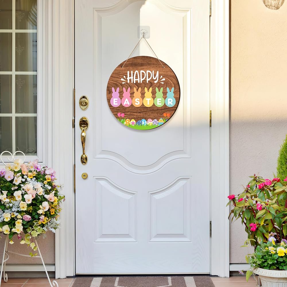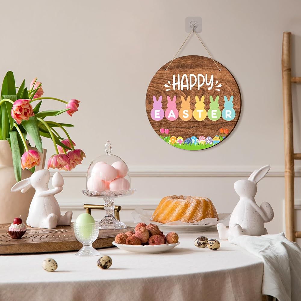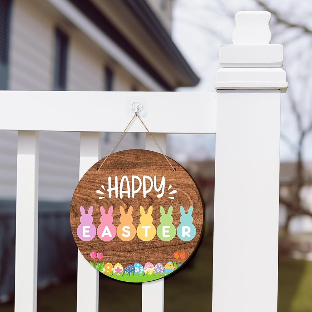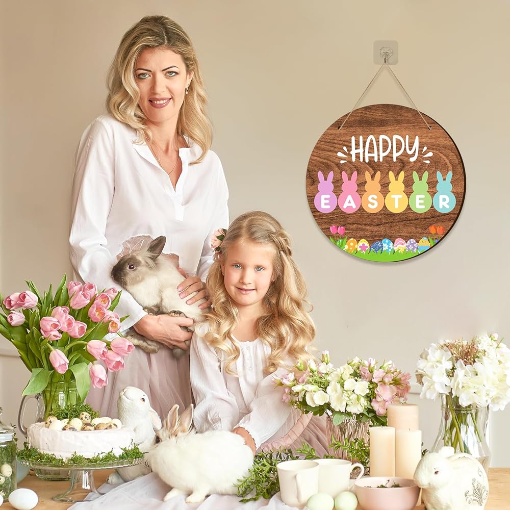 زينة عيد الفصح للمنزل الداخلي والخارجي، لافتة عيد الفصح السعيدة ديكور الباب الأمامي، شماعة باب الأرنب الأخضر، إكليل خشب عيد الفصح الريفي، ديكور جدار الشرفة