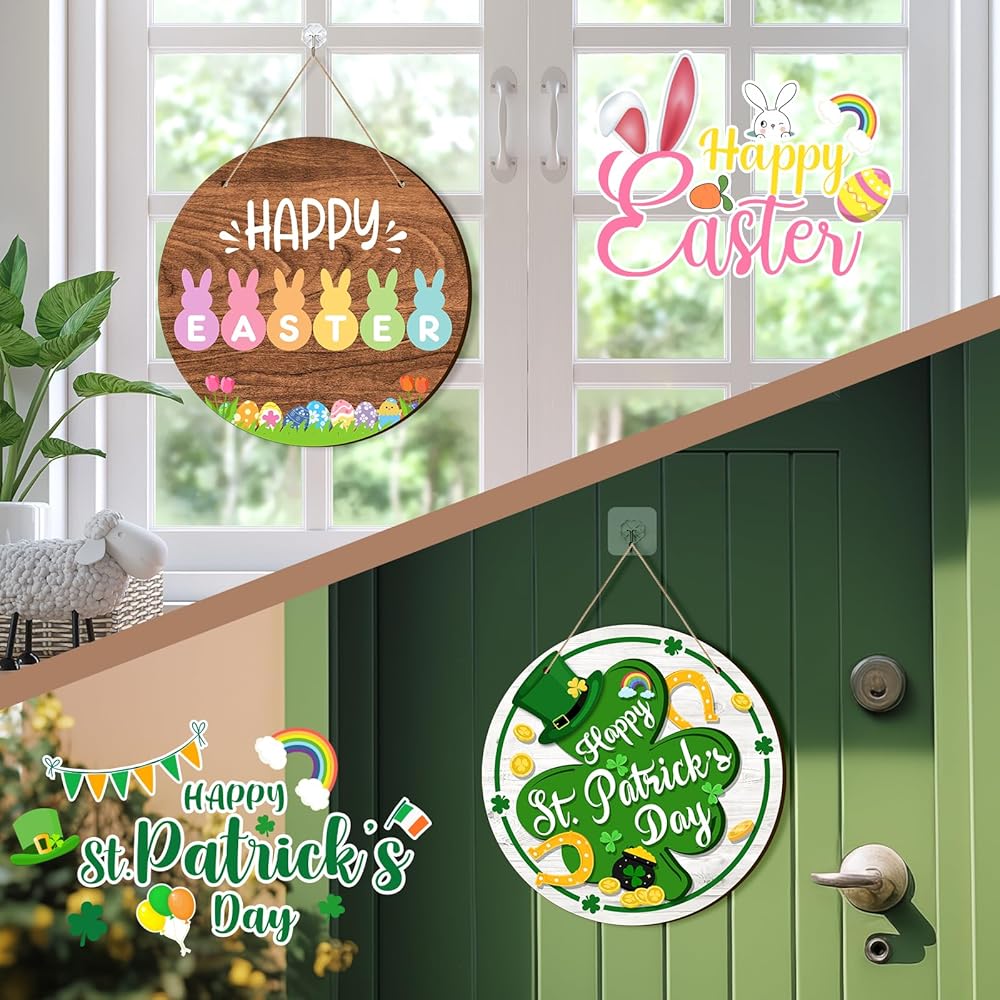 ديكور متعدد الاستخدامات: احتضن الروح الاحتفالية مع ديكور باب شامروك كلوفر الدائري. مثالية للأبواب الأمامية، والشرفات، والمداخل، والجدران، والنوافذ، والساحات خلال عيد القديس باتريك وعيد الفصح، وتميز بألوان خضراء زاهية وعناصر عيد الفصح الكلاسيكية في ديكور منزلك
