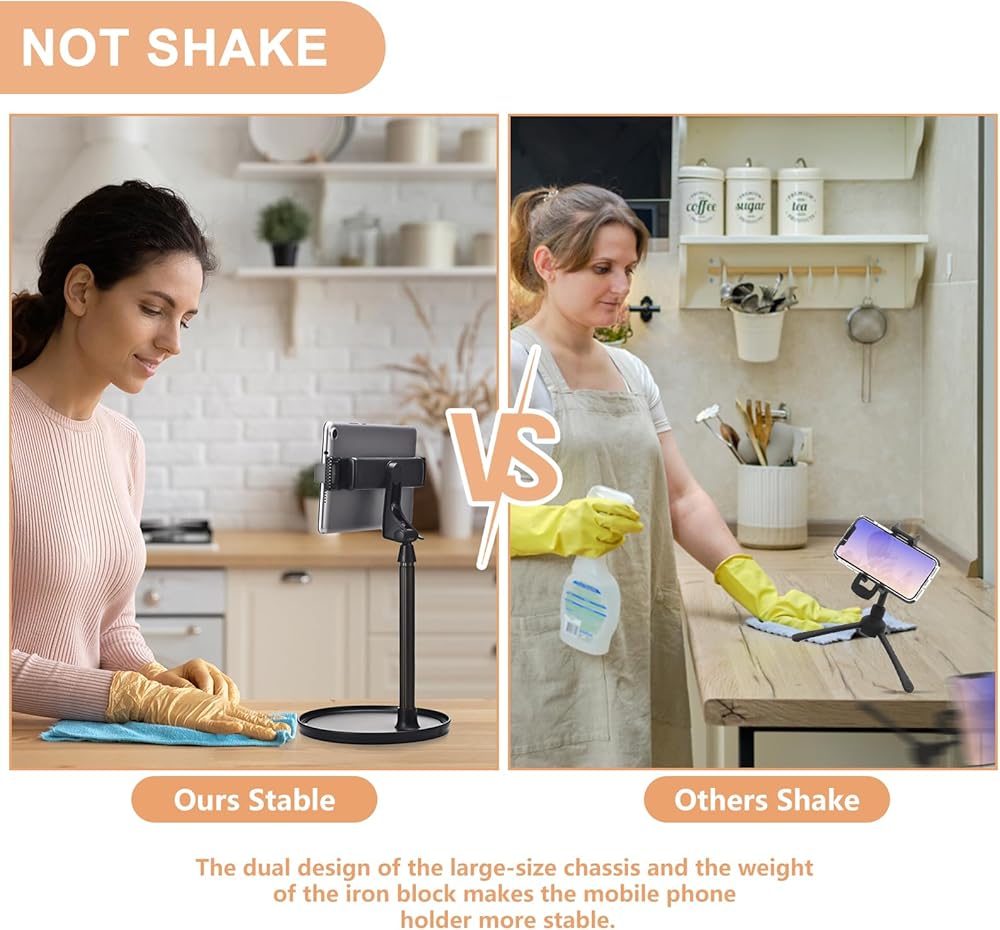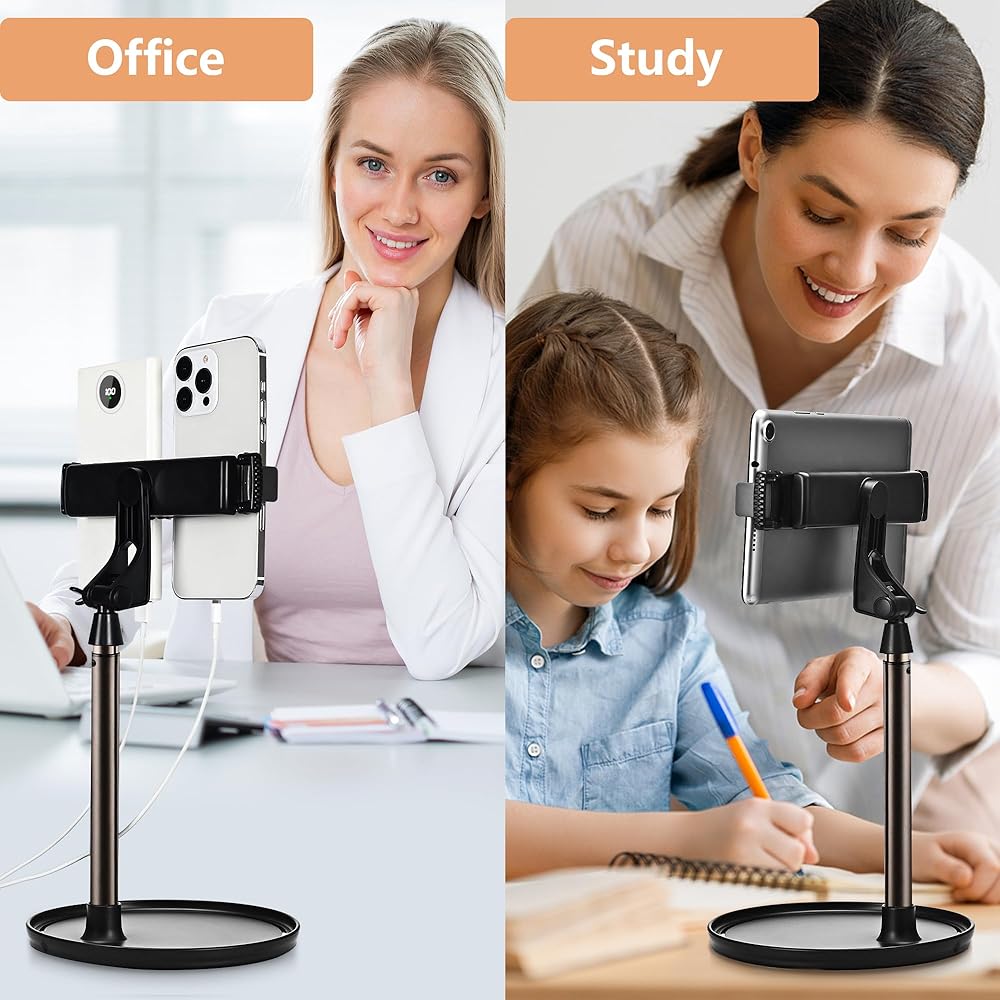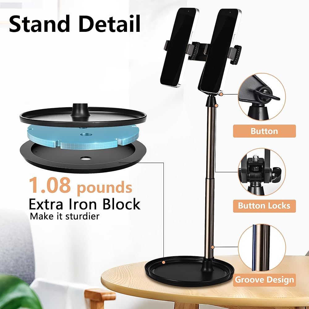 【قاعدة مرجحة】الجزء السفلي من حامل الهاتف اللوحي مجهز بكتلة حديد كبيرة بوزن 1.08 كجم، مما يزيد من ثبات حامل الدردشة المكتبي حتى لا يسقط حتى إذا كان يحمل هاتفًا أو جهازًا لوحيًا. استخدمه كحامل هاتف للمكتب.