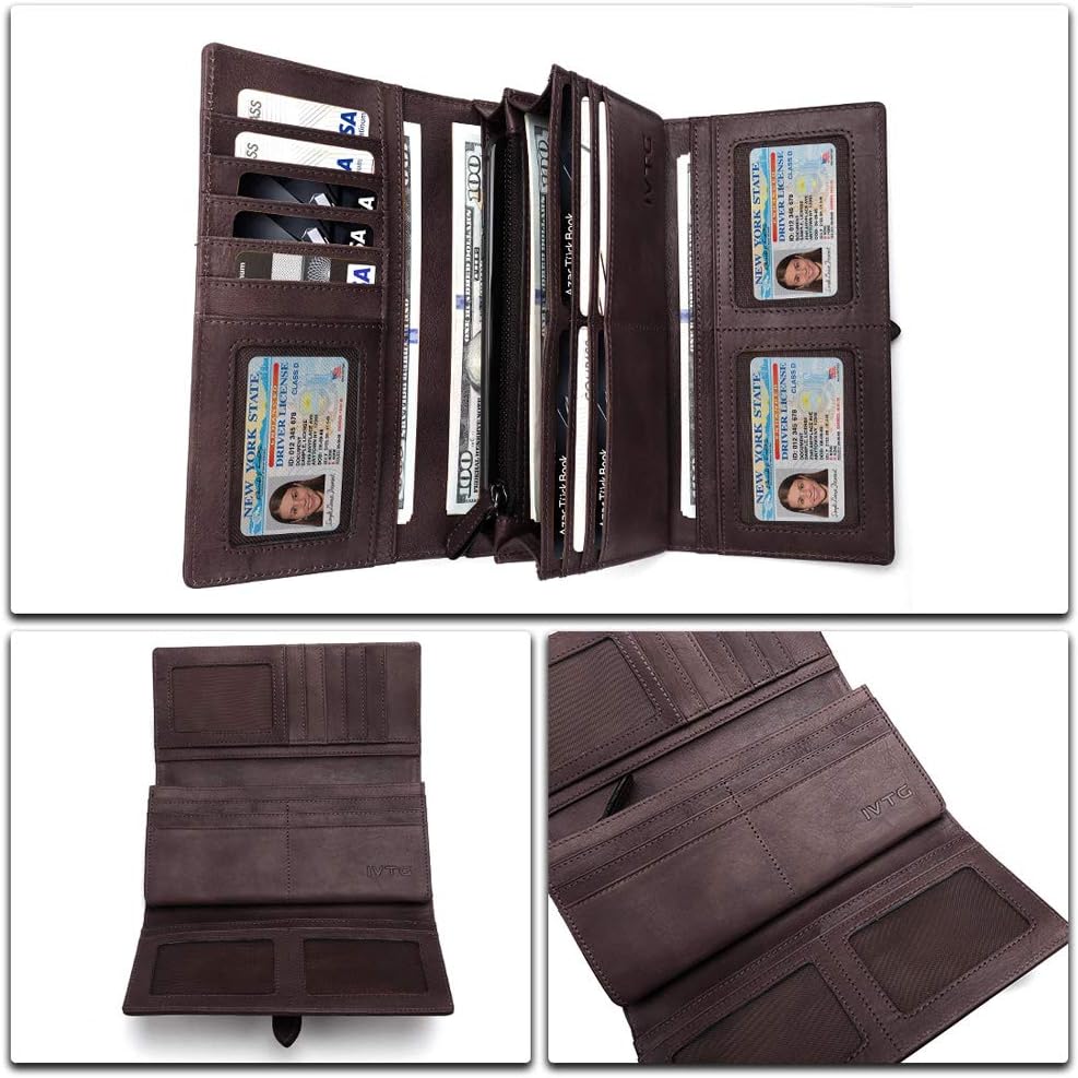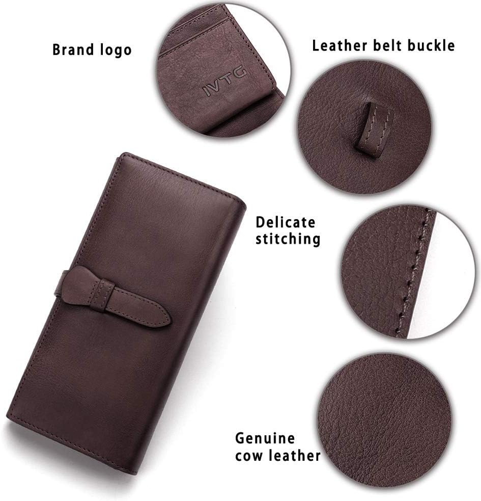 IVTG محفظة جلدية حقيقية المرأة محفظة طويلة مخلب خمر جلد البقر حامل بطاقة اليدوية المنظم
