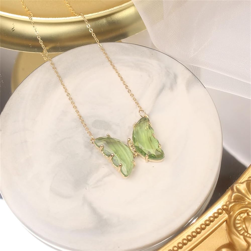 تصميم أنيق-- تتميز هذه القلادة الكريستالية على شكل فراشة بتصميم رومانسي وجميل، هذه القلادة الرائعة واللطيفة ستجعلك لامعة للغاية. وفي الوقت نفسه، التصميم مناسب لأي مناسبة، مثل الحفلات أو العشاء، فمن السهل أن يتناسب مع ملابسك.