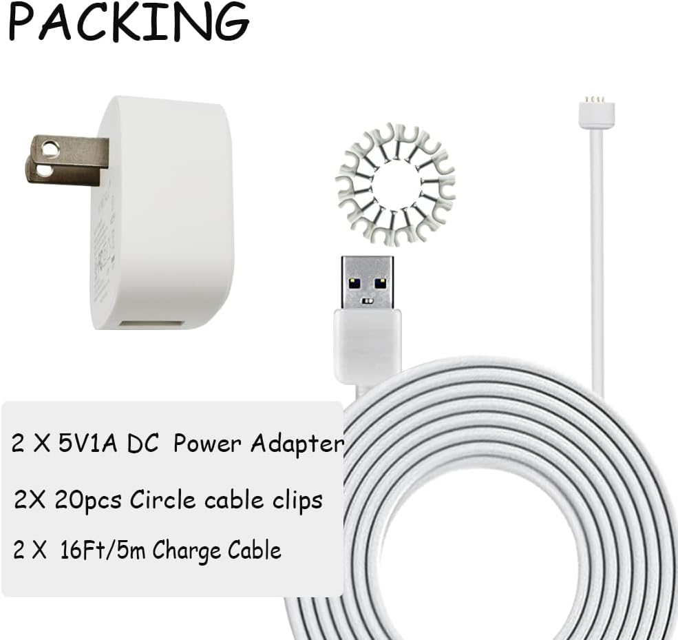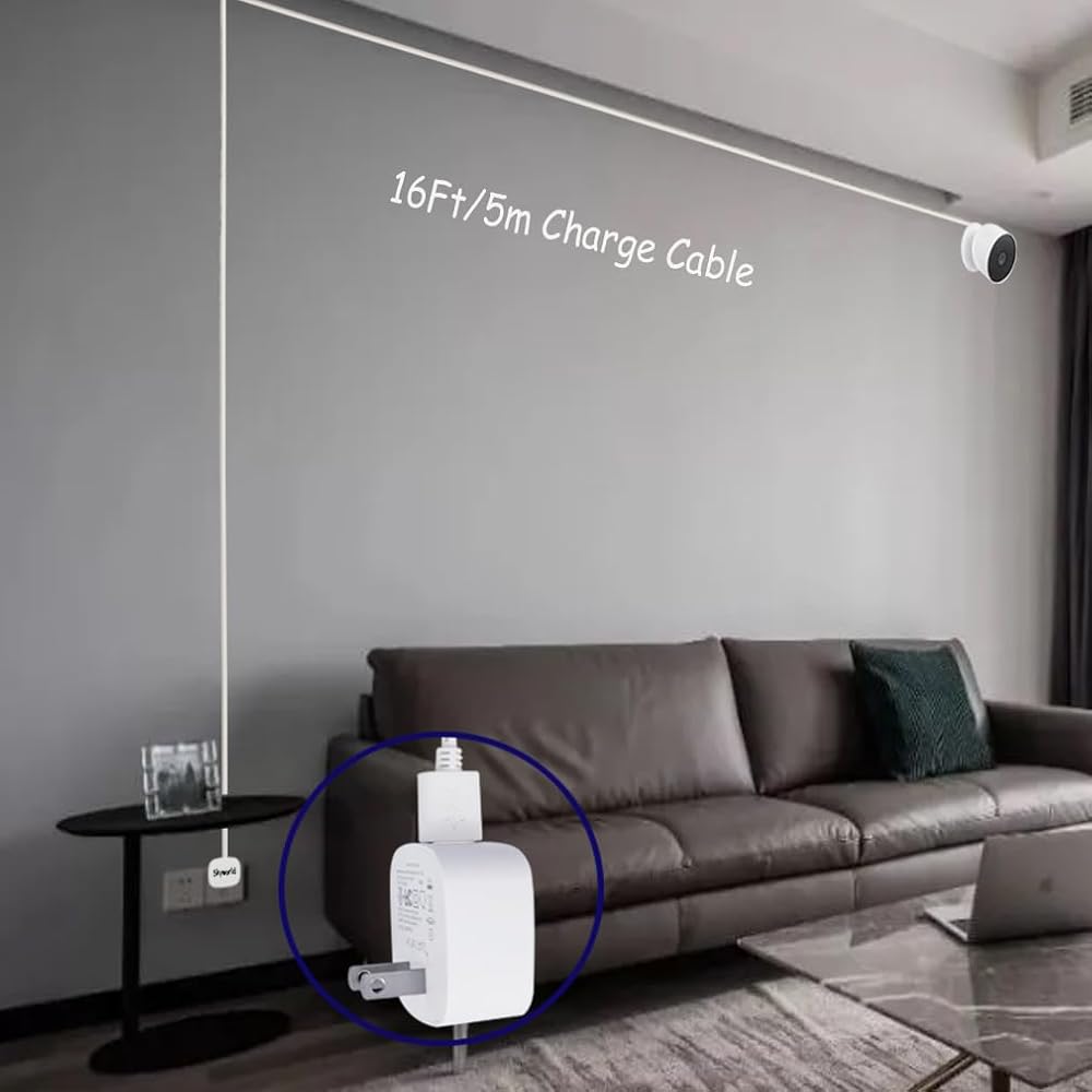 【لا مزيد من تغييرات البطارية】 لم تعد بحاجة إلى إزالة البطارية لإعادة الشحن، يمكن لسلك الطاقة الكهربائي بطول 16 قدمًا / 5 أمتار مع محول شحن الكاميرا الخاصة بك، توفير مصدر طاقة مستمر طويل الأمد لكاميرا Google Nest Cam الخارجية أو الداخلية (البطارية)، لا مزيد من القلق بشأن البطاريات الميتة