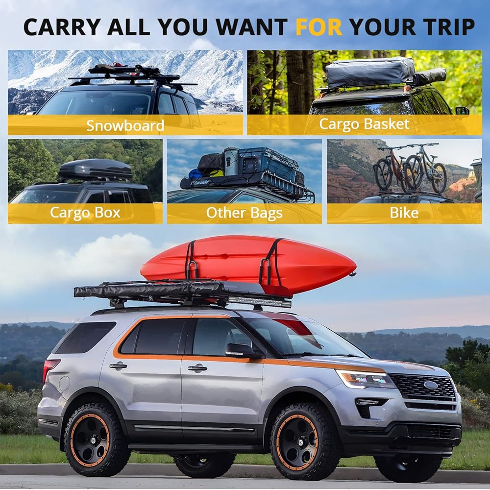 【متينة طوال العمر】 - رفوف السقف مصنوعة من الألومنيوم عالي الجودة ومطلية بمسحوق أسود غير لامع من أجل القوة والمتانة. لا داعي للقلق بشأن التآكل أو كسر البراغي.