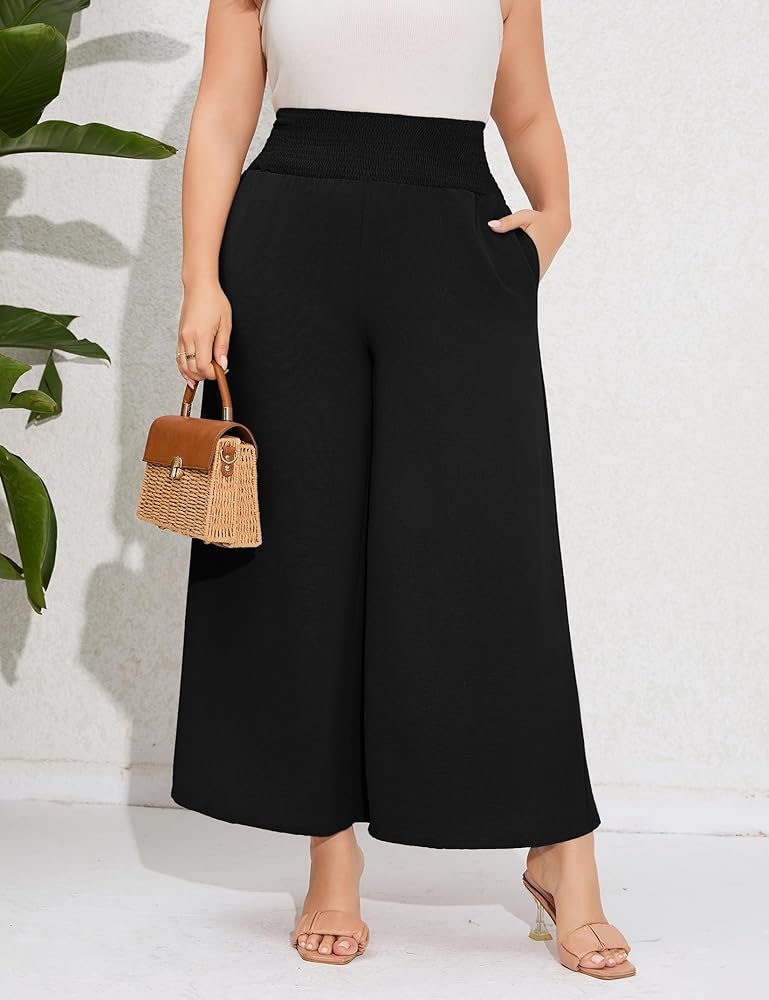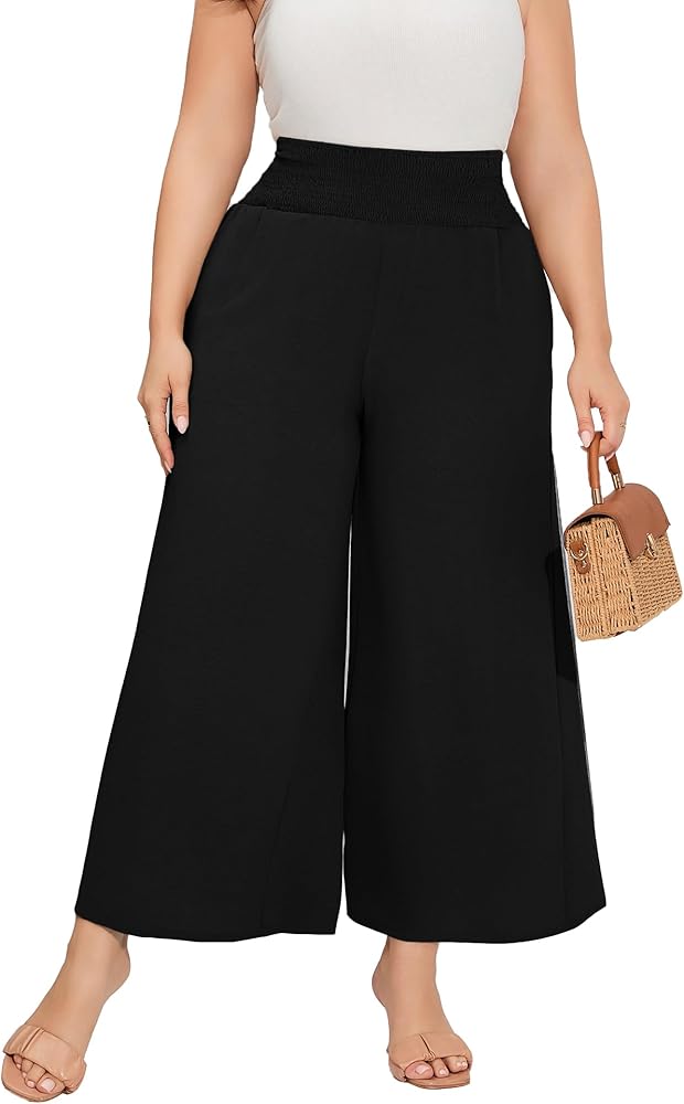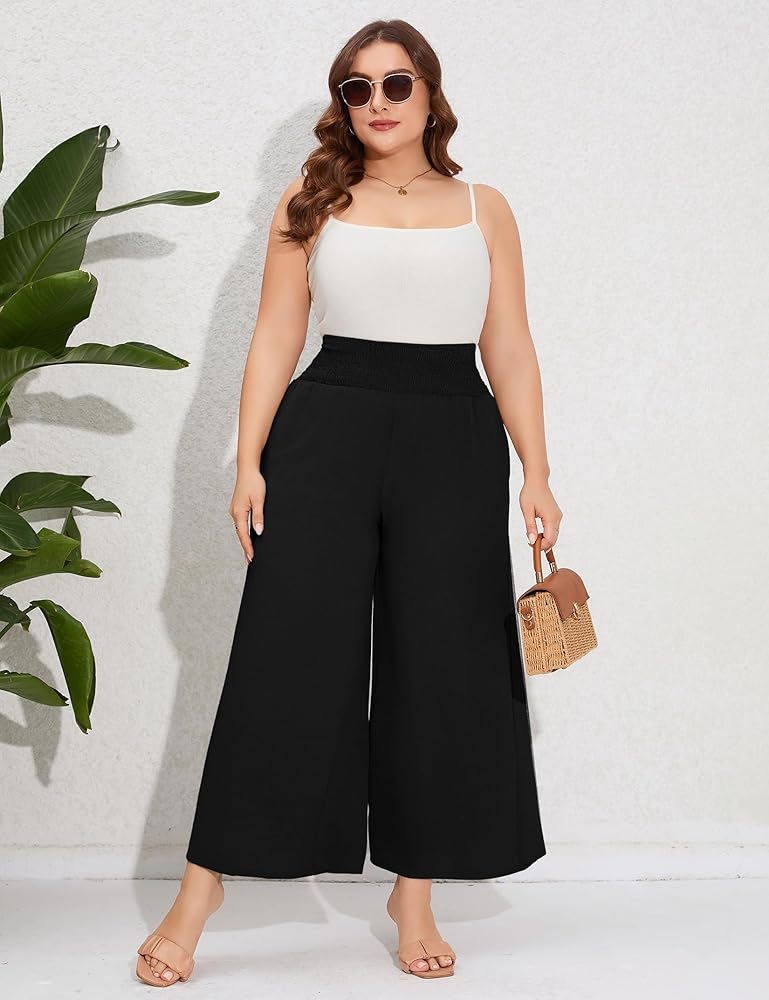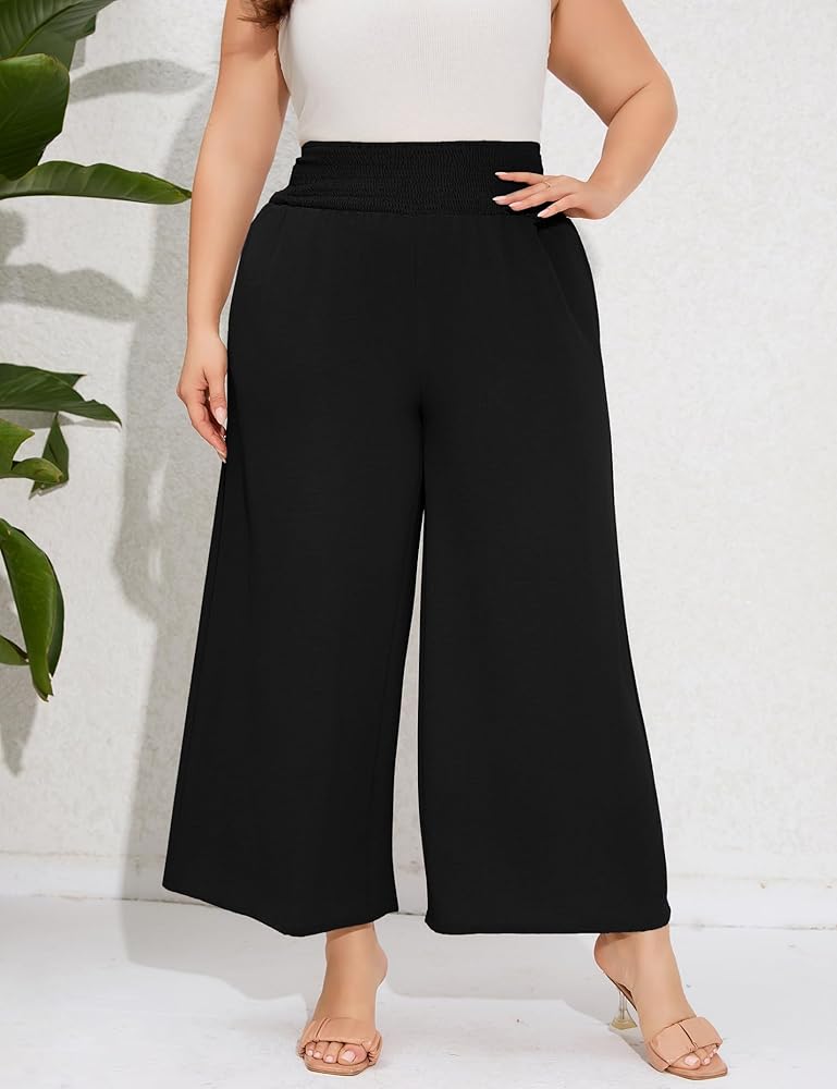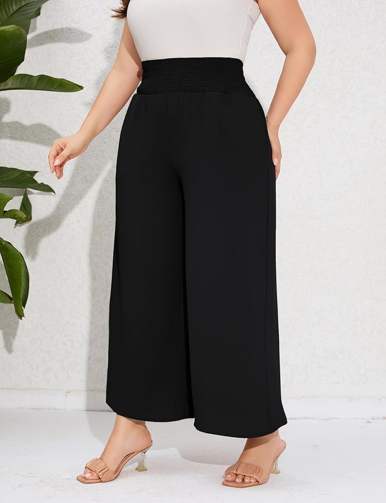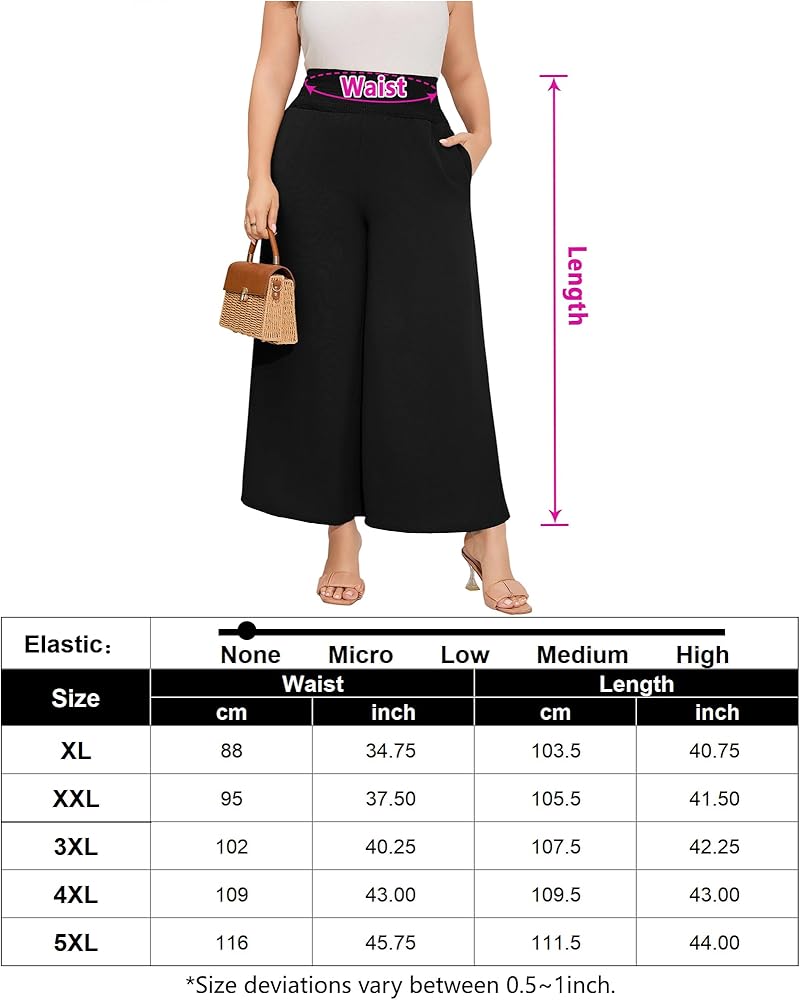القماش: هذا البنطلون ذو الخصر العالي والساقين للنساء ذوات المقاسات الكبيرة مصنوع من نسيج ناعم، وهو مريح وخفيف الوزن وجيد التهوية.