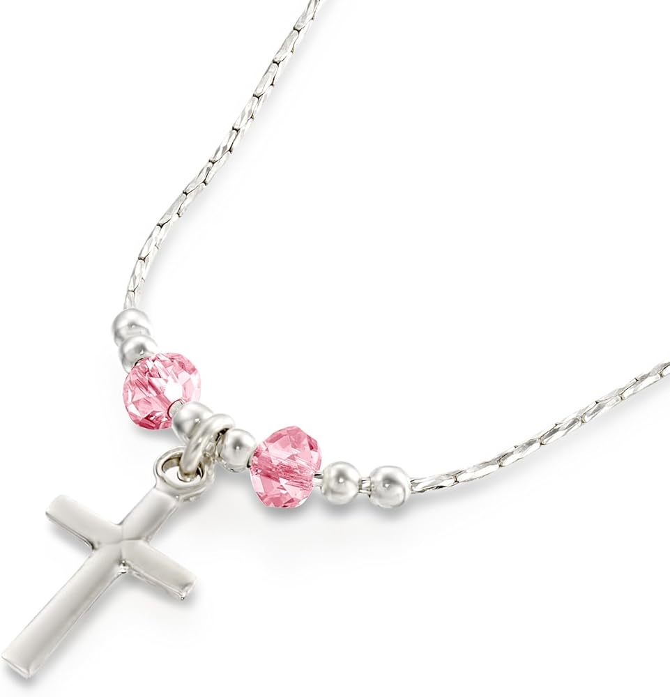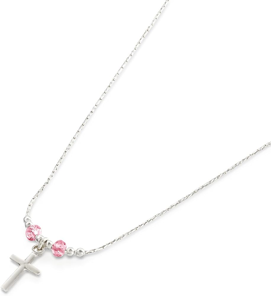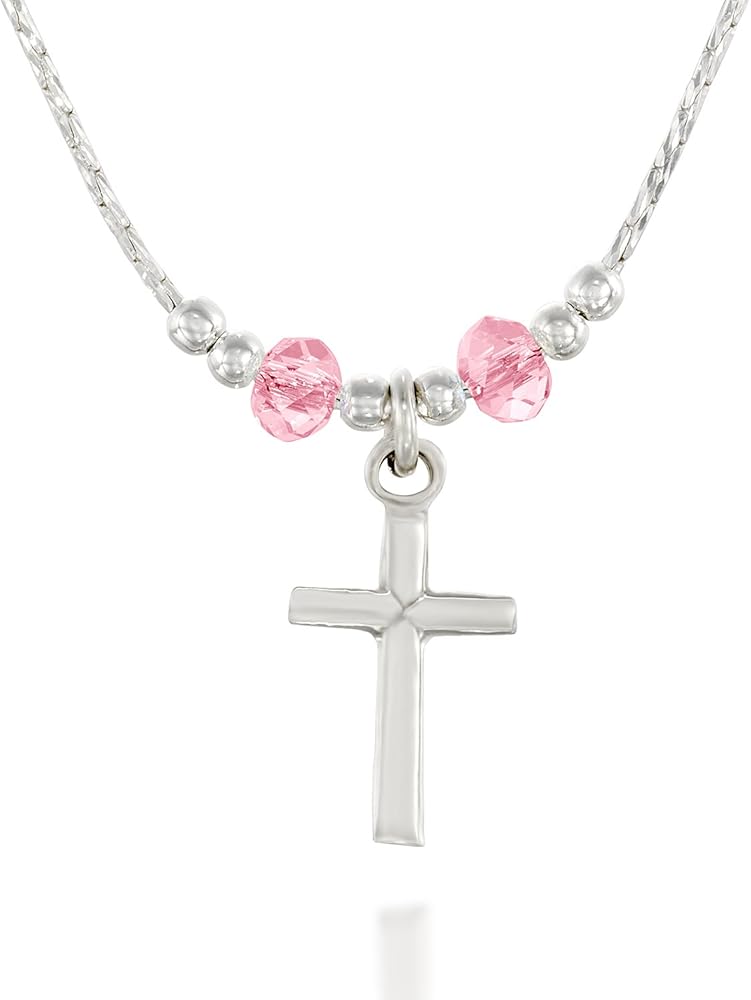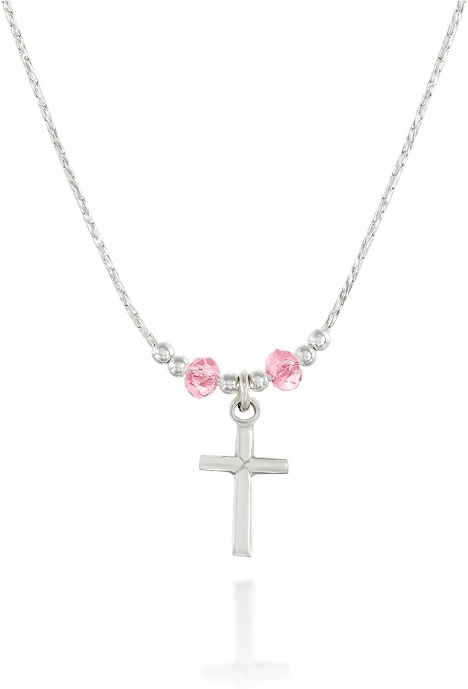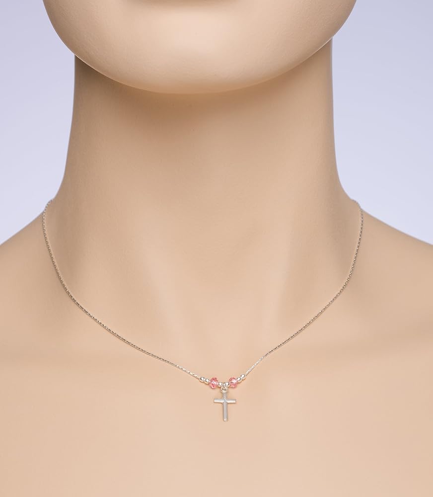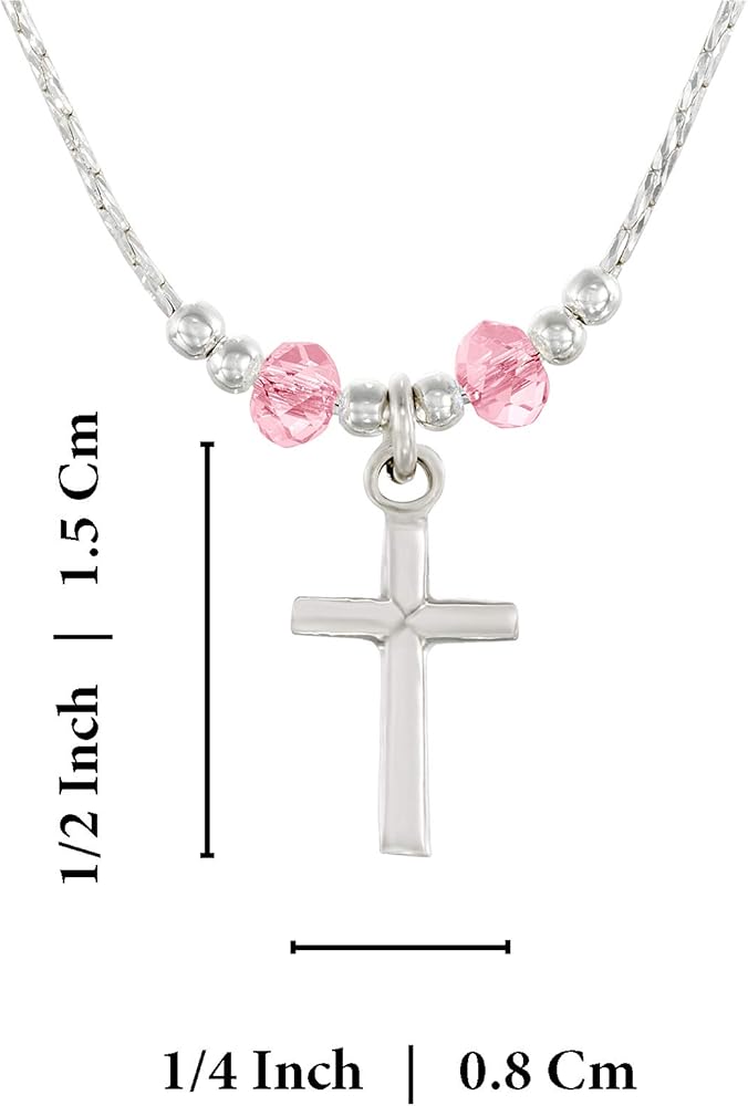 قلادة جميلة للفتيات مع صليب فضي أنيق يبلغ طوله حوالي 1/2 بوصة (وعرضه حوالي 1/4 بوصة)، ويبلغ قياس 2 كريستال سواروفسكي حوالي 4 مم لكل منهما