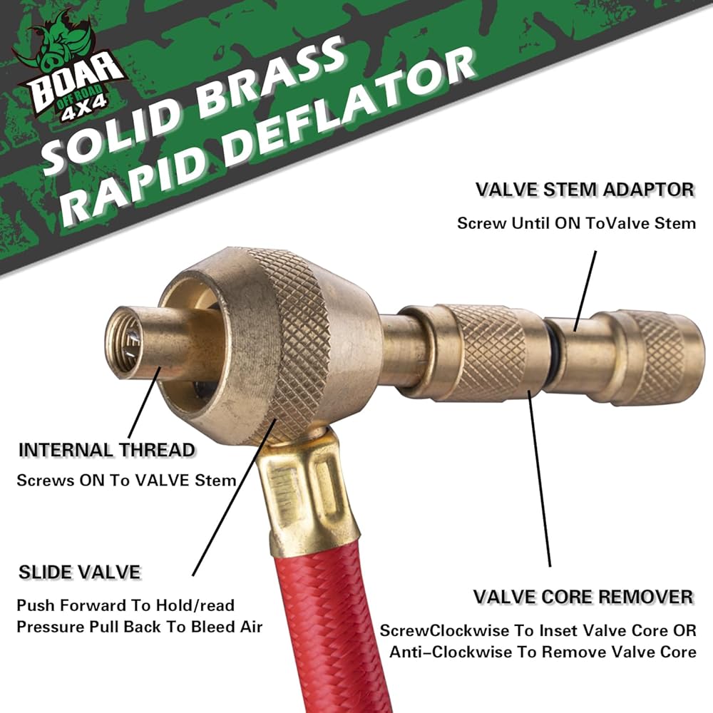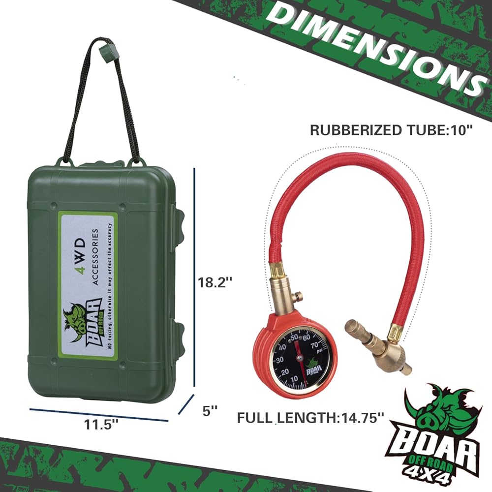 إصدار سريع: يتميز ضغط الإطارات بمقياس الهواء بتصميم فريد بدون صمام يوفر عملية طرد هواء سريعة. يعمل بعد إزالة قلوب الصمامات، ويمكنه قفل إعداد PSI الخاص بك، لذا فإن الإطارات المفرغة دقيقة دون إعادة ضبط PSI مرارًا وتكرارًا، من أجل أوقات تفريغ أسرع ستجعلك تعود إلى عجلة القيادة بشكل أسرع.