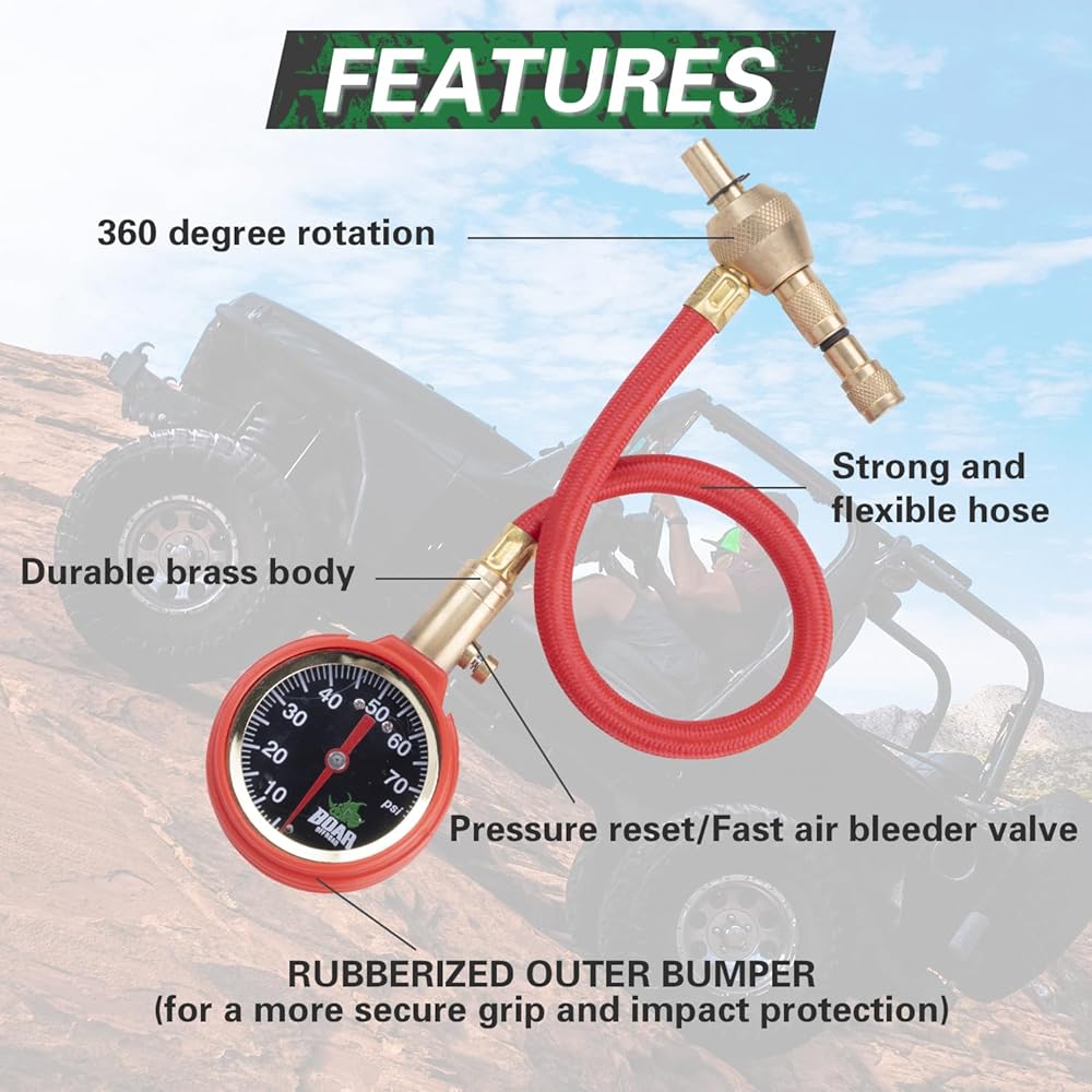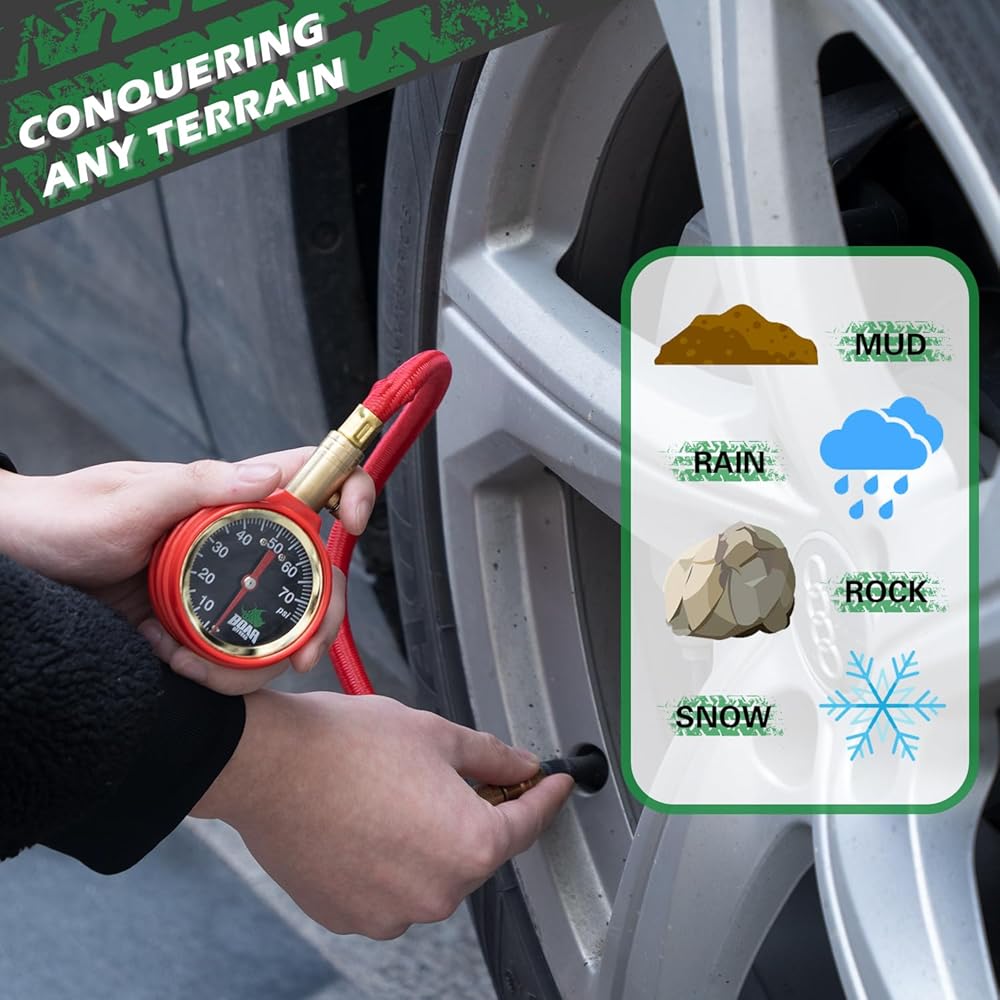 الطريقة الأكثر دقة لتفريغ الهواء: حافظ على الإطار عند الضغط الأمثل. إنه حرفيًا منقذ للحياة. يمنحك جهاز تفريغ الهواء من الطرق الوعرة قراءة دقيقة للضغط في كل مرة تستخدمها، حتى في درجات الحرارة المختلفة. فهو يوفر قراءة دقيقة للغاية للضغط في الوقت الحقيقي مما يجعل عملية تهوية الإطارات سريعة ودقيقة.