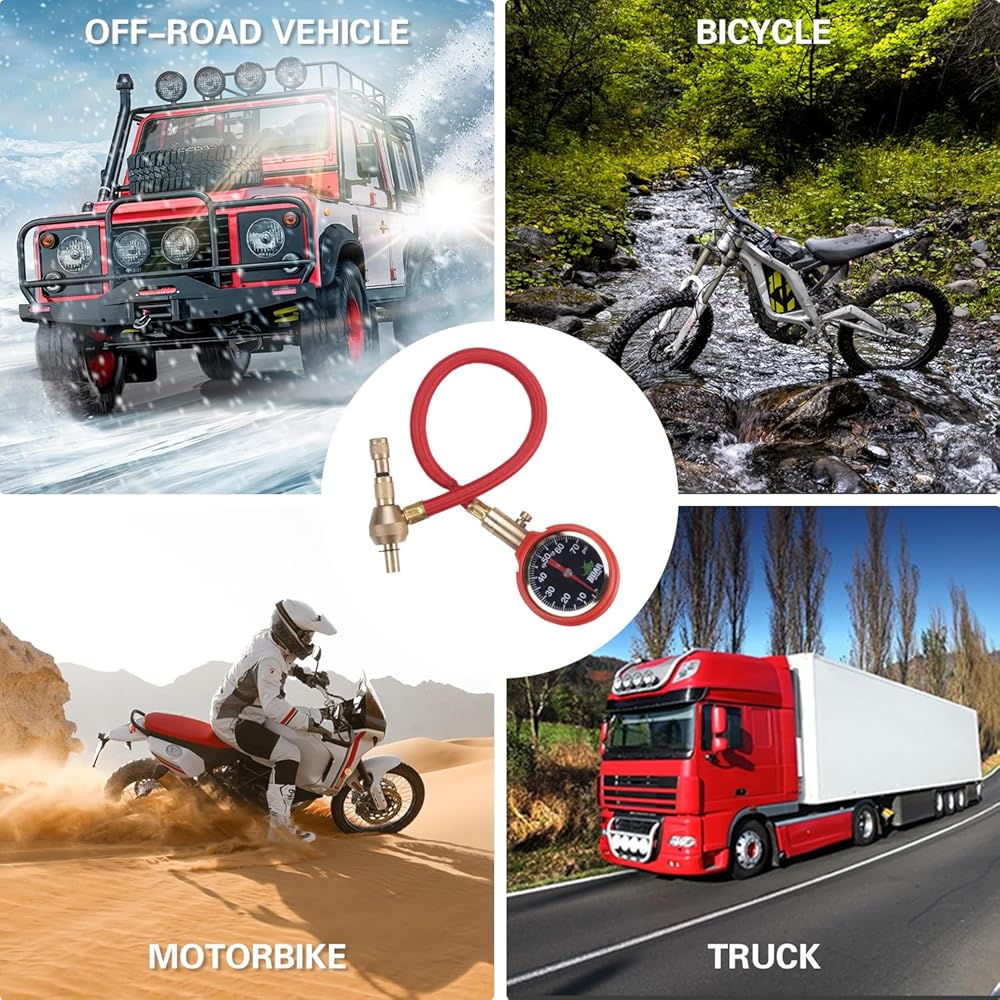منفاخ الهواء للإطارات، مقياس ضغط الإطارات التناظري، قرص سهل القراءة من 0 إلى 75 رطل لكل بوصة مربعة مع زر تحرير سريع دقيق وأدوات إصلاح الإطارات للسيارة والدراجات النارية والشاحنات وRV وATV وUTV وإطارات المركبات