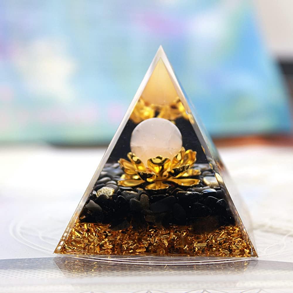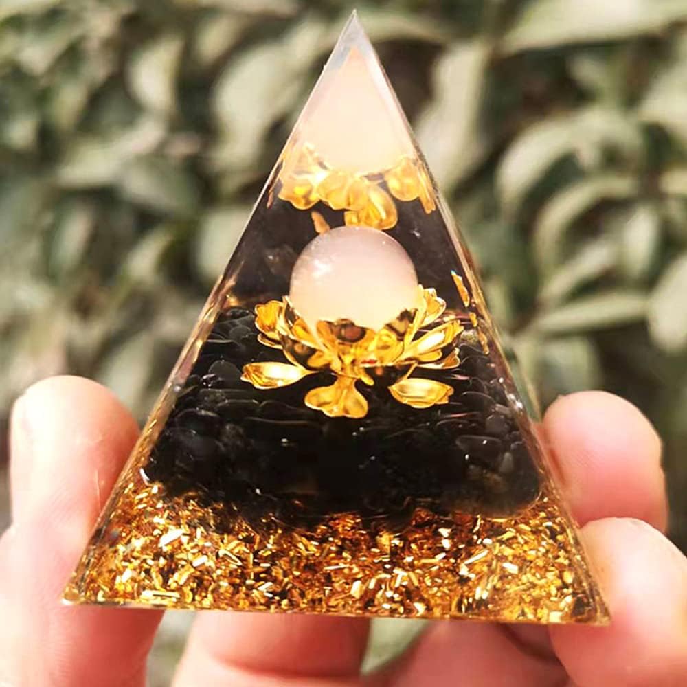 زهرة الحياة الهرمية من أورجون للطاقة الإيجابية، الطاقة، هرم كريستال أورجونيت، مولد طاقة بلورات الحماية، التأمل العلاجي، جذب الثروة المحظوظة (#A-Pink Crystal + Lotus)