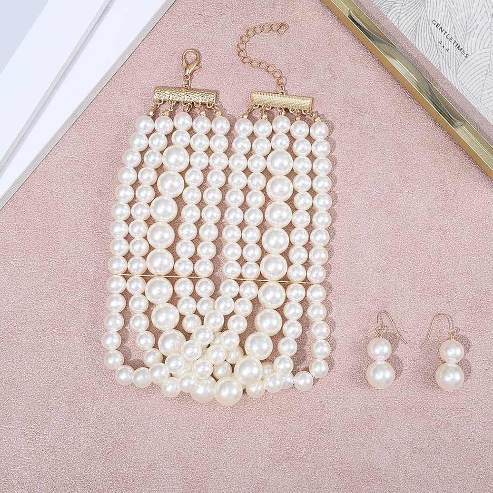 مجموعة قلادة كلاسيكية للسيدات بتصميم فريد وصناعة ممتازة، مصنوعة من اللؤلؤ الصناعي والسبائك.