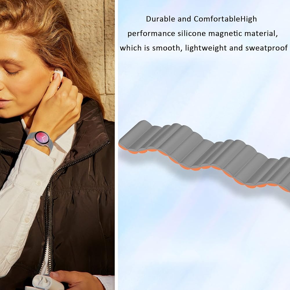 [مواد عالية الجودة]: حزام SKYLET المغناطيسي مصنوع من السيليكون المتين مع مغناطيس قوي، مما سيساعد على تثبيت ساعتك مقاس 20 مم بشكل آمن باستخدام أساور المعصم ذات حلقة الإغلاق. أحزمة ساعة جالاكسي 41 ملم مصنوعة من السيليكون عالي الجودة، وهو خفيف الوزن ومقاوم للاهتراء ومقاوم للخدش، وناعم ومريح. توفر مادة السيليكون الناعمة شعورًا مريحًا وباردًا لمعصمك.