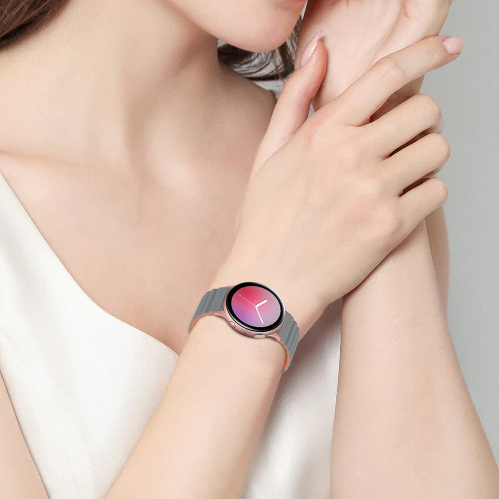 أحزمة حلقة SKYLET متوافقة مع ساعة Samsung Galaxy Watch 4 Watch 5 40mm 44mm/Watch 5 Pro 45mm/Watch 4 Classic 42mm 46mm/Galaxy Active 2/Gear Sport للرجال والنساء، حزام سيليكون 20 مم مع مغناطيس قوي