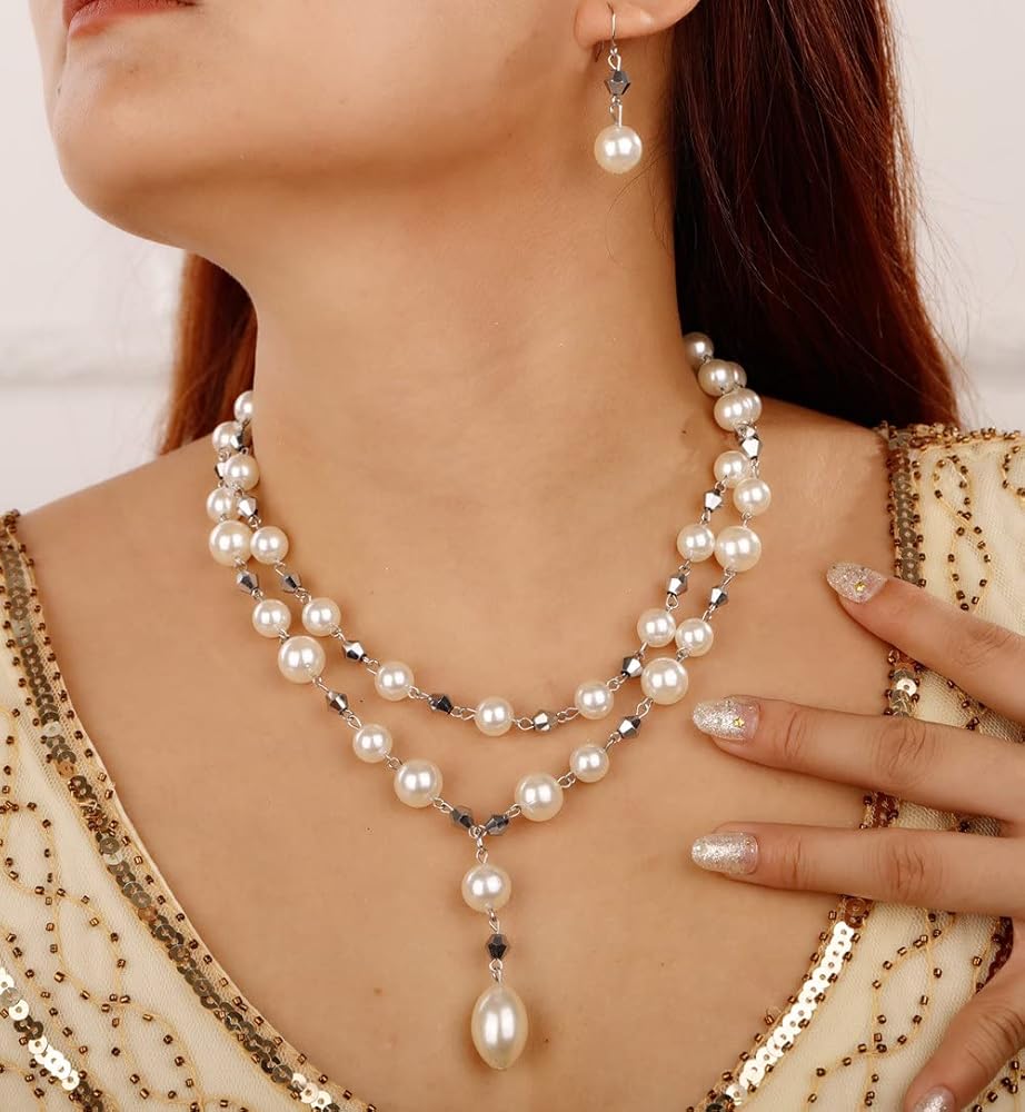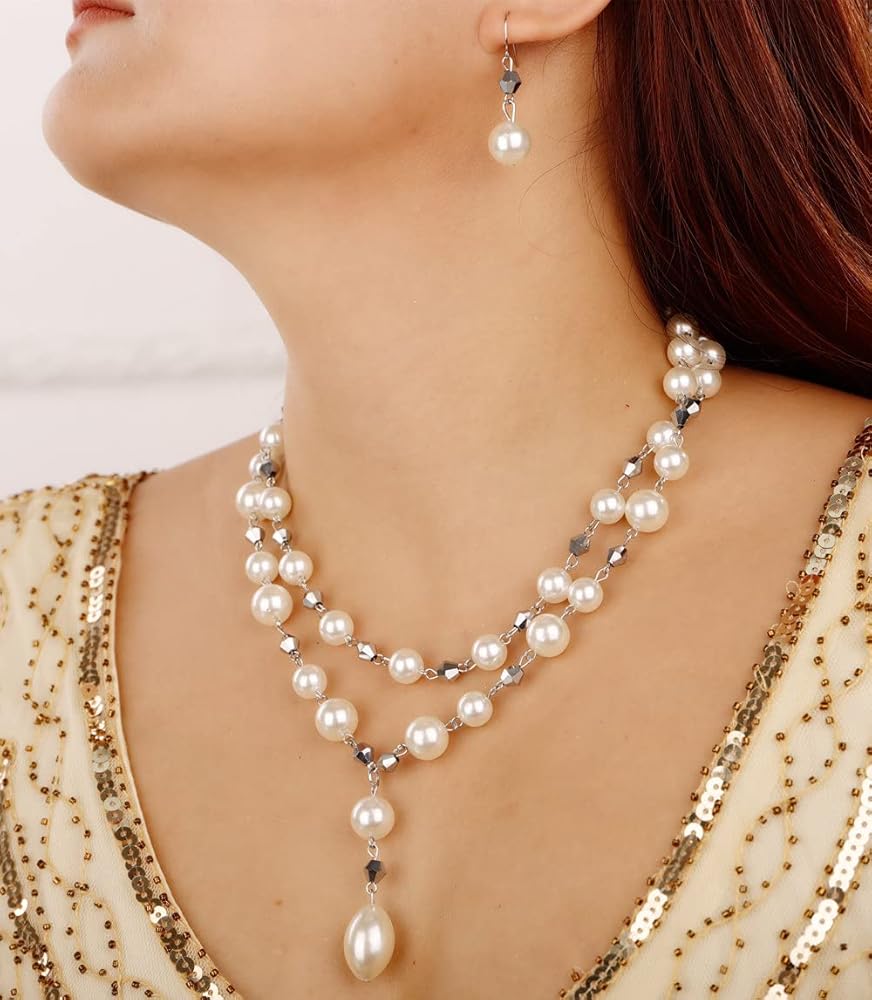 Sither Layerd عقد من اللؤلؤ للنساء 1920s خمر اللؤلؤ قلادة المختنق قلادة لجميع القديسين عيد الميلاد حفلة زي مجوهرات هدية