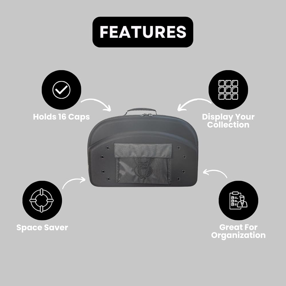 مصممة لـ 16 غطاء - تم تصميم حقيبة الحمل الأصلية من Homiegear لتخزين ما يصل إلى 16 غطاء. عند التخطيط لرحلة أو حدث خارجي، يجب أن تكون قبعتك الثمينة معك. يمكن لحقيبة النقل الحديثة HG تخزين ما يصل إلى 16 غطاء من مختلف الأحجام والعلامات التجارية.