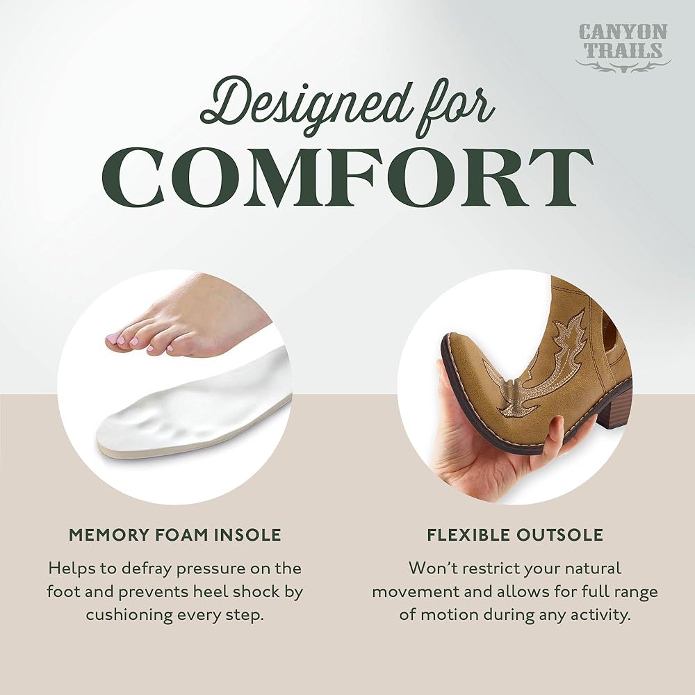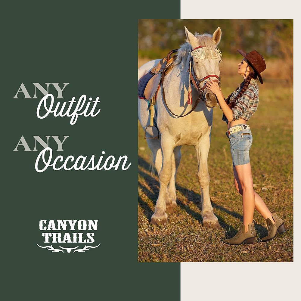أفضل أحذية راعية البقر للنساء - تقدم Canyon Trails مجموعة متنوعة من الأحذية النسائية الرائعة بألوان مختلفة وتصميمات أنيقة. اختر أحذية الكاحل اللطيفة مع بطانة ناعمة قابلة للتنفس ونعال داخلية من الإسفنج الذكي الفاخر. مزيج مثالي من طراز راعية البقر الكلاسيكي والجريء مع جلد صناعي طارد للماء وخياطة وتطريز حذاء رعاة البقر الكلاسيكي أو التقليدي.