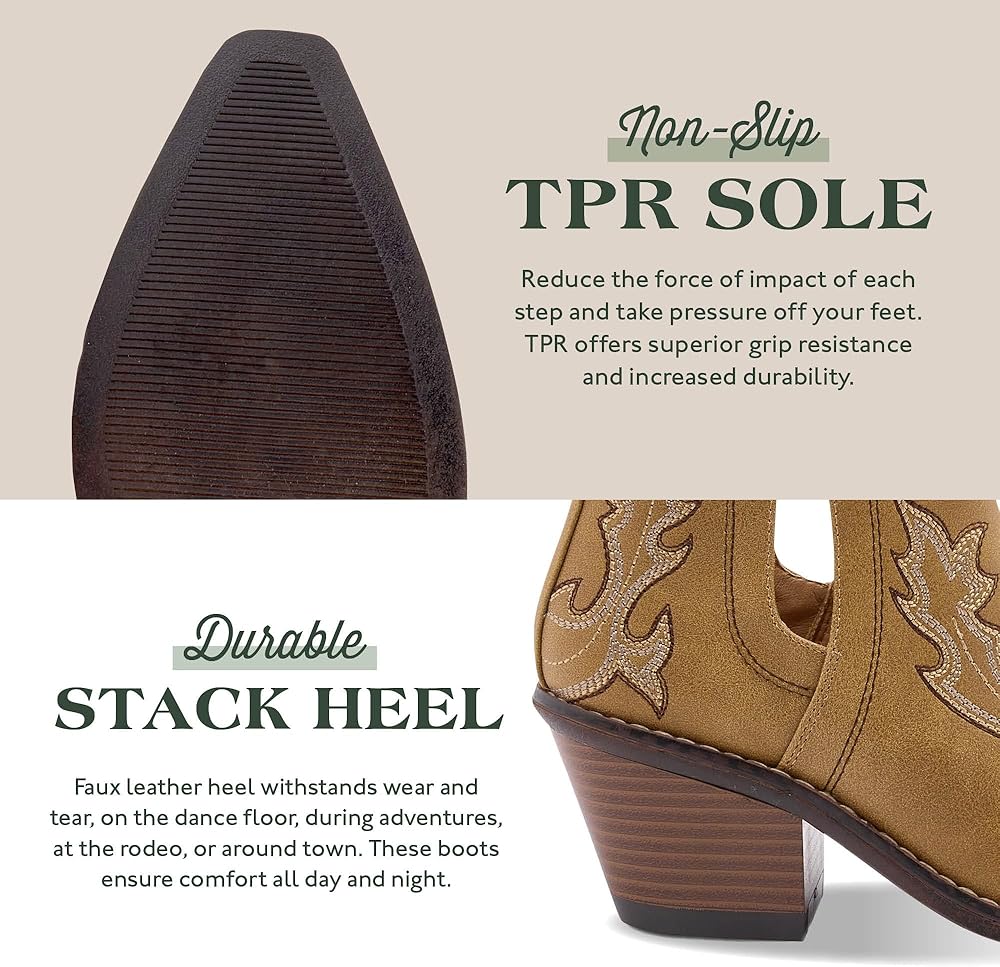 توافق مثالي - كل زوج جميل من أحذية الكاحل والأحذية الغربية يبدو رائعًا مع زوج مريح من الجينز أو الفساتين أو التنانير أو الملابس الداخلية أو السراويل القصيرة. يمكنك أيضًا ارتدائها بملابس راعية البقر الرسمية للمناسبات الخاصة في الداخل أو الخارج مثل مسابقات رعاة البقر أو الرقص.