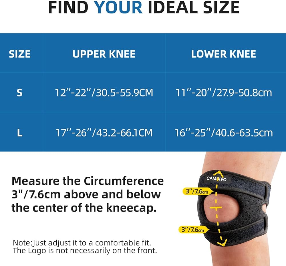 • اختر المقاس المناسب: قد لا يكون مقاسك الطبيعي مناسبًا بشكل جيد، لذا يُرجى العثور على مقاسك الصحيح وفقًا لجدول مقاسات Cambivo بعد قياس محيط ركبتك؛ بين الأحجام؟ اختر مقاسًا أصغر بدرجة واحدة للحصول على مقاس محكم، واختار مقاسًا أكبر للحصول على مقاس فضفاض