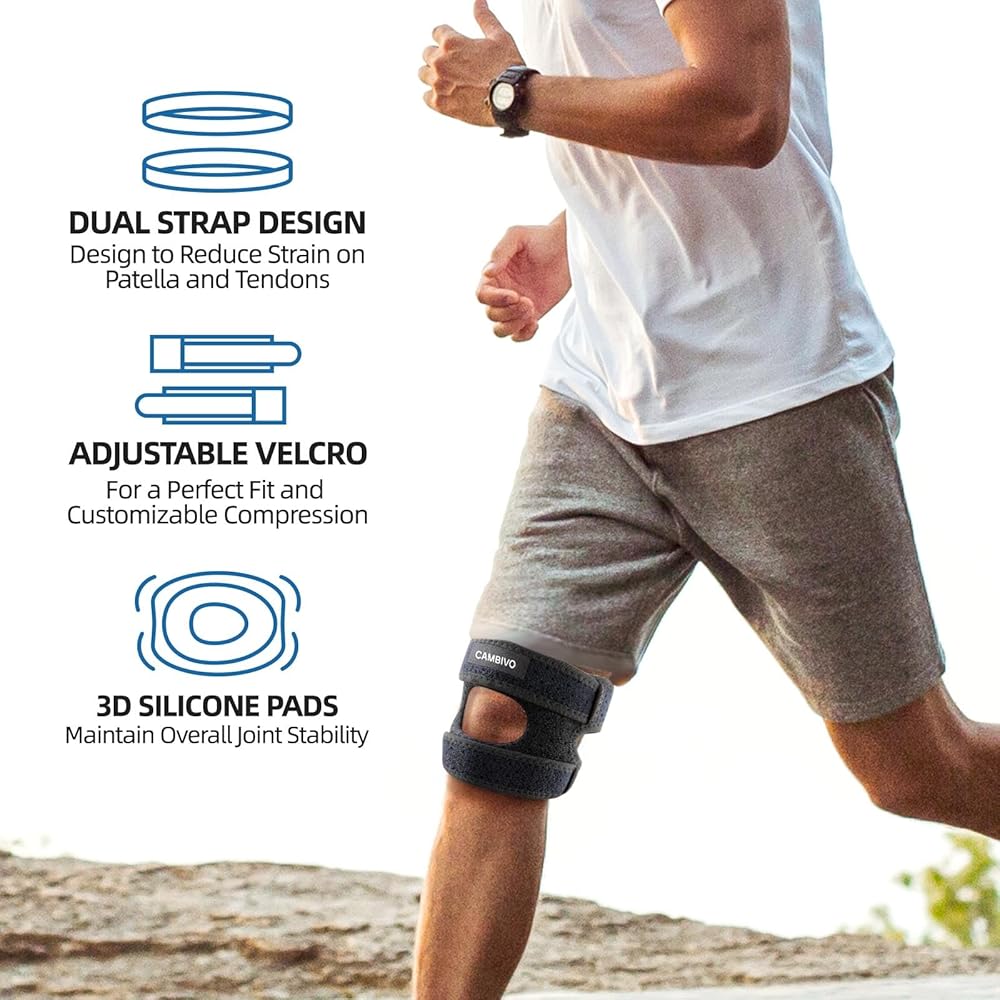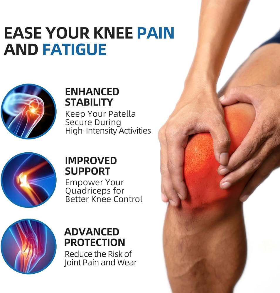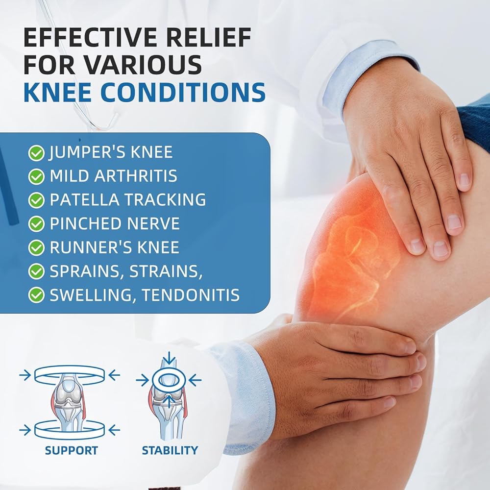 • تساعد في تخفيف آلام الركبة: تقلل أحزمة الركبة الرضفية من الضغط والضغط على المفاصل لتخفيف آلام الركبة مثل تمزق الغضروف المفصلي، والتهاب المفاصل، والتهاب الأوتار، وخراجات بيكر، وPFPS، وITBS MCL، وACL؛ المساعدة في استقرار الرضفة ومنع المزيد من الإصابات من خلال توفير الدعم والضغط لمفاصل الركبة؛ تقوية آلية الرضفة لتسريع عملية الشفاء وتقليل التورم حول الركبة